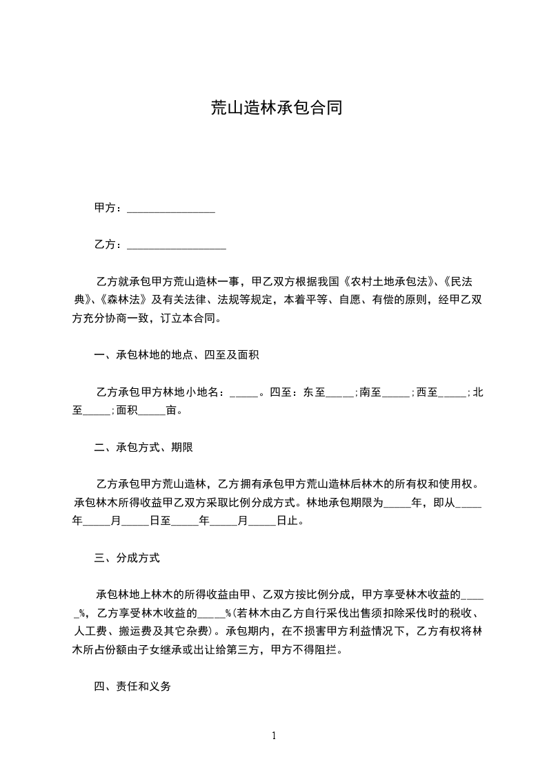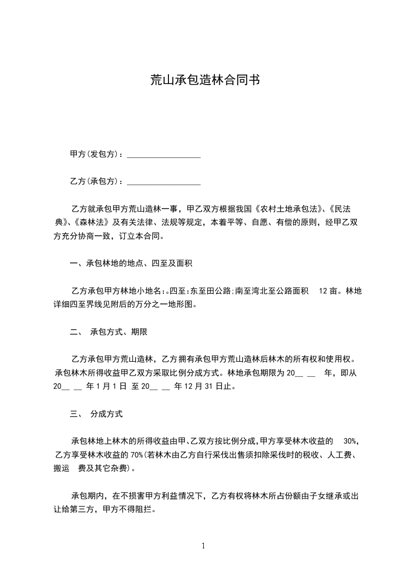 六、乙方有权在所承包的荒山范围内植树造林,不得开荒种地。