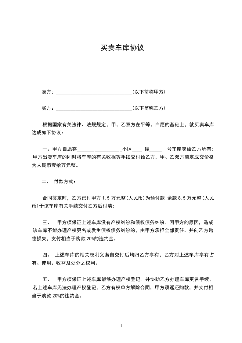 二、甲乙双方约定车库总价款(包括定金在内),人民币壹拾贰万元整(小写 元)。买卖双方的税收由甲乙双方各自承担。