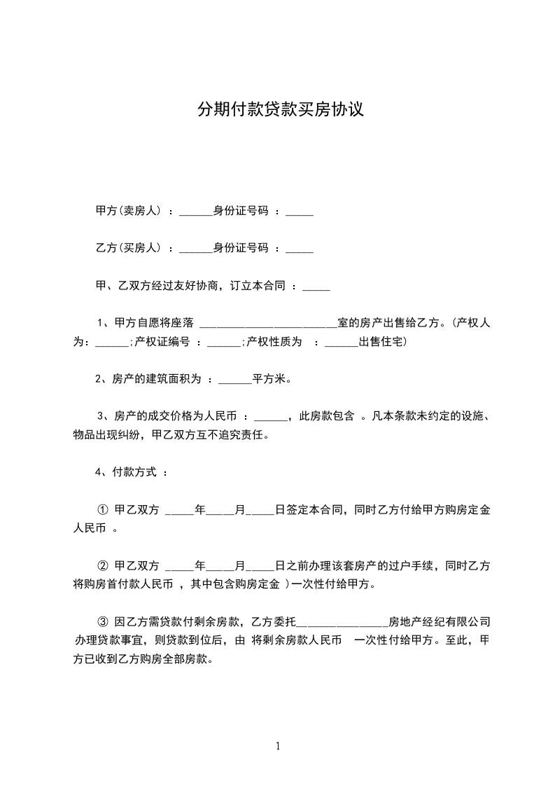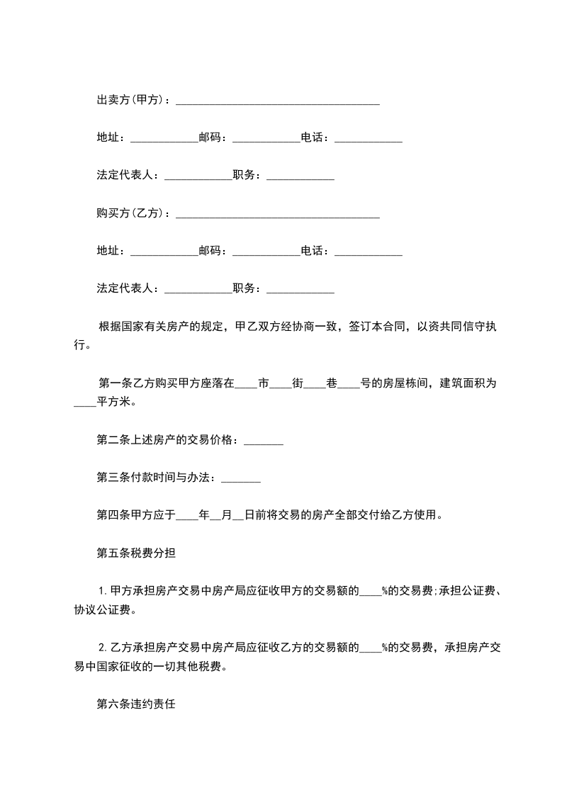 4、乙方应在本协议书签订后至年________日前,带齐相关资料到___X物管处签订《商品房买卖合同》,同时交清购房款,乙方交付的购房首付款无息转为购房款的一部分。