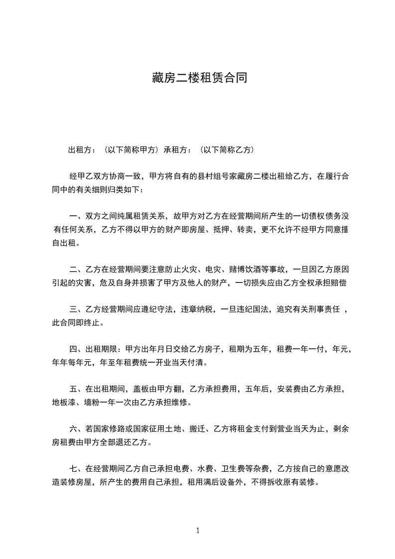 经甲乙双方协商一致,甲方将自有的县村组号家藏房二楼出租给乙方,在履行合同中的有关细则归类如下: