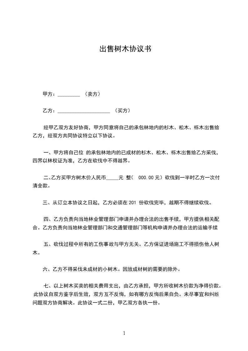 1、甲方承诺所有出售的树木有完全的处分权,保证无任何权属争议和经济纠纷。否则承担乙方的所有损失。
