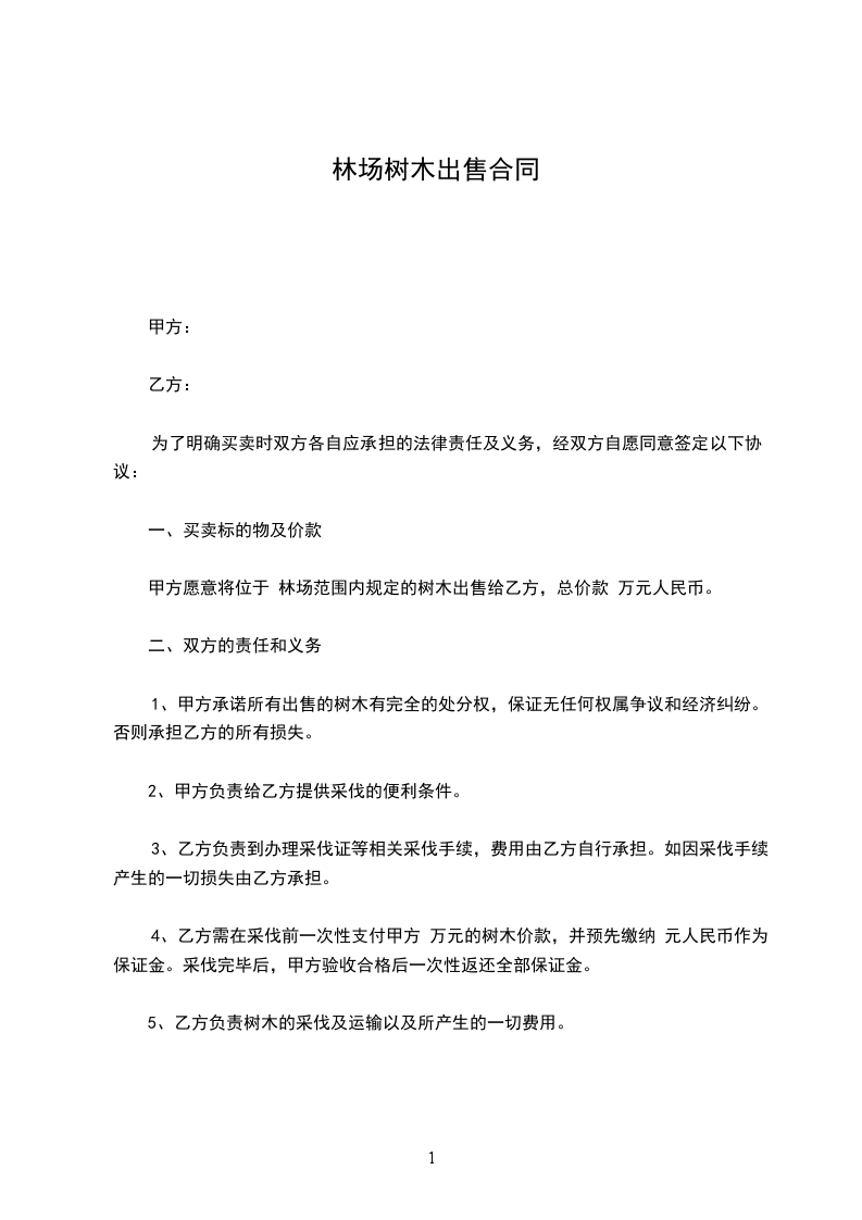 甲方愿意将位于 林场范围内规定的树木出售给乙方,总价款 万元人民币。