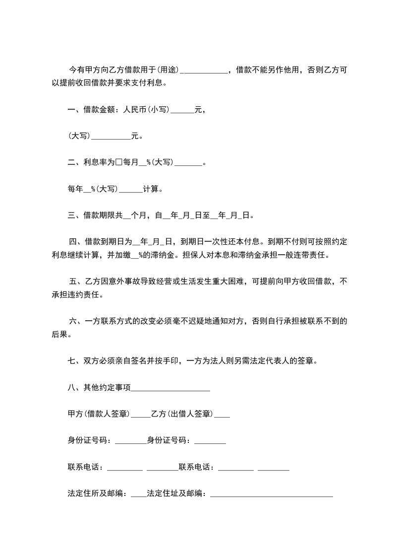 4、本借款乙方最迟于借款支付日起天内归还给甲方。