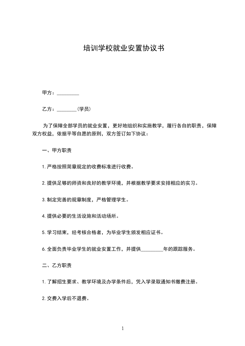 2.甲方负责为乙方的就业提供安置机会,就业安置率100%,甲方为乙方提供就业安置机会不少于三次(不能取得毕业证书者除外)。