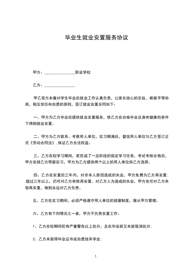 1.协议期限自_______年_______月_______日至_______年_______日,甲方为乙方完成三次就业安置;