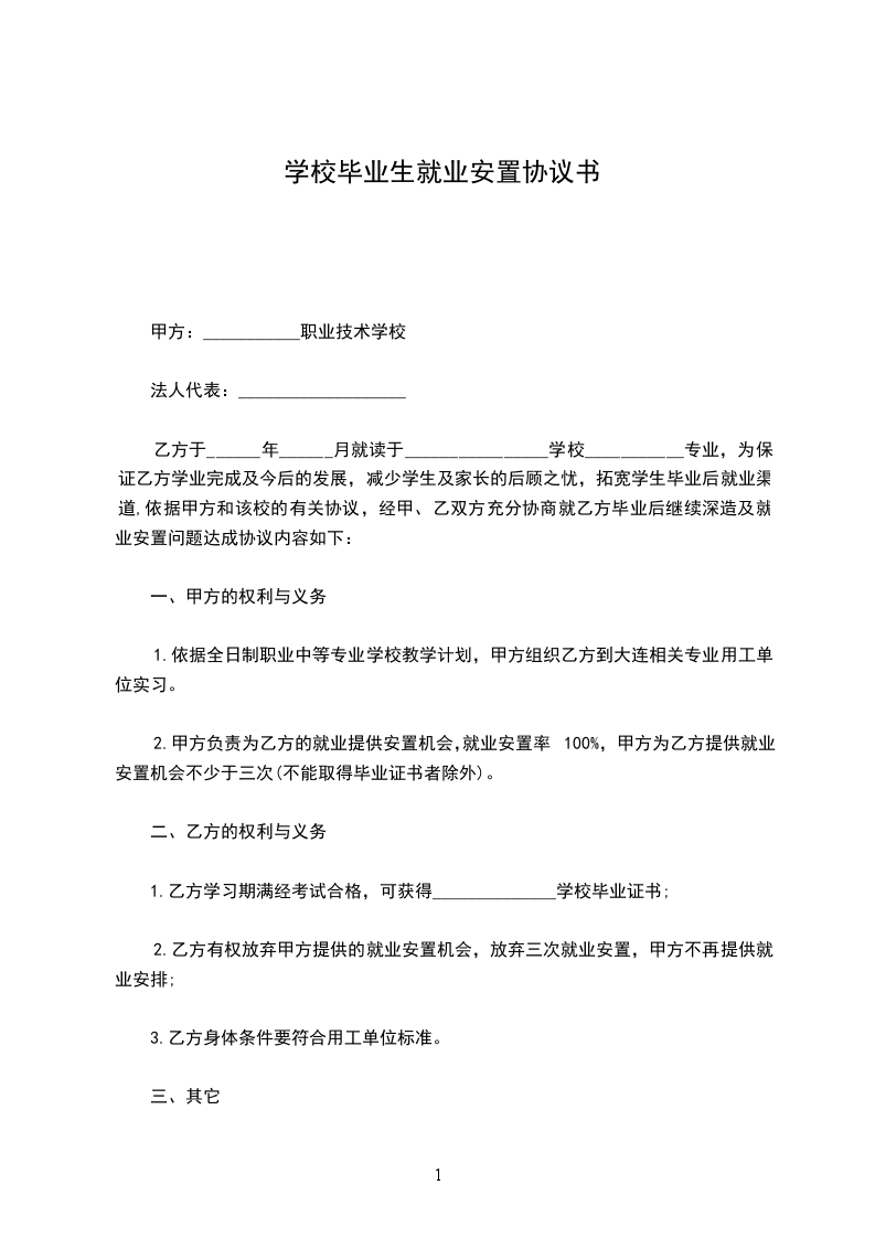 乙方于______年______月就读于________________学校___________专业,为保证乙方学业完成及今后的发展,减少学生及家长的后顾之忧,拓宽学生毕业后就业渠道,依据甲方和该校的有关协议,经甲、乙双方充分协商就乙方毕业后继续深造及就业安置问题达成协议内容如下: