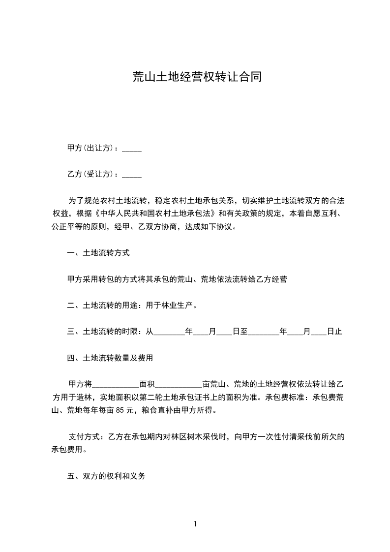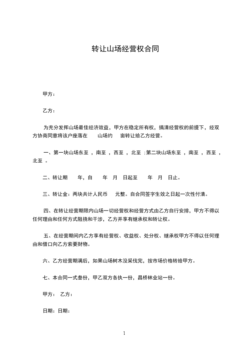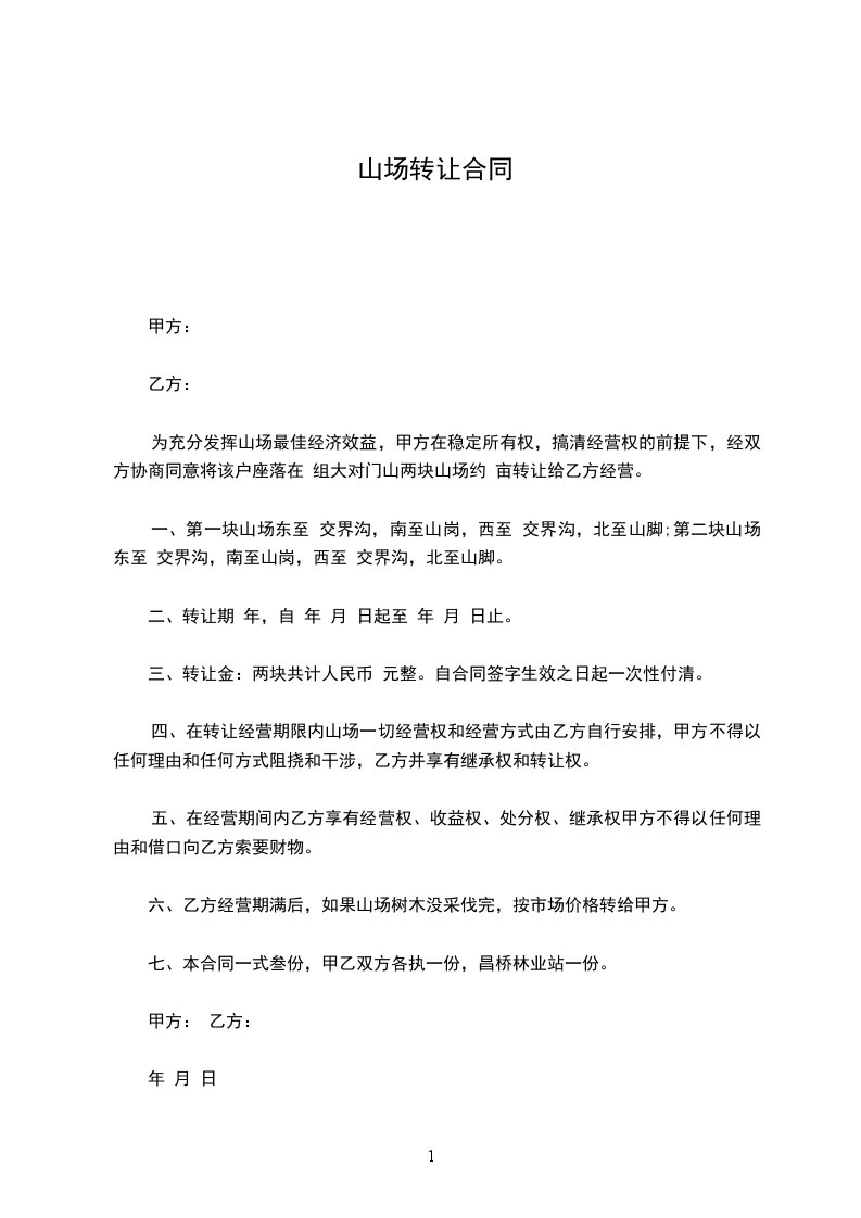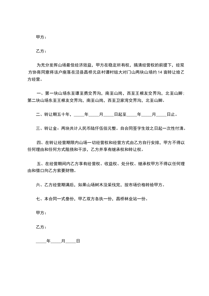 为充分发挥山场最佳经济效益,甲方在稳定所有权,搞清经营权的前提下,经双方协商同意将该户座落在 亩转让给乙方经营。