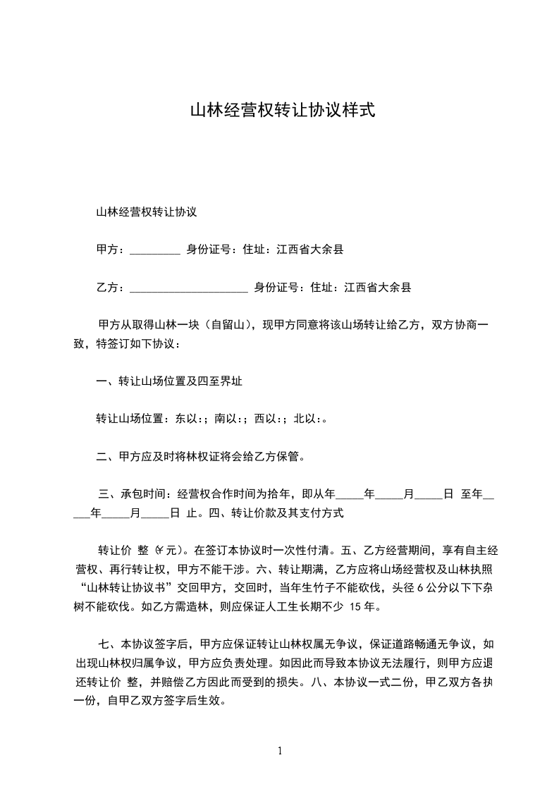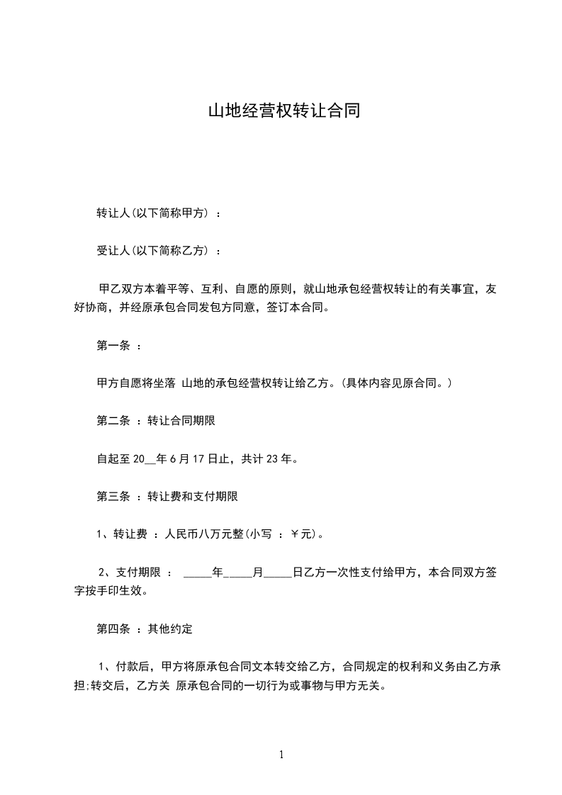 四、在转让经营期限内山场一切经营权和经营方式由乙方自行安排,甲方不得以任何理由和任何方式阻挠和干涉,乙方并享有继承权和转让权。