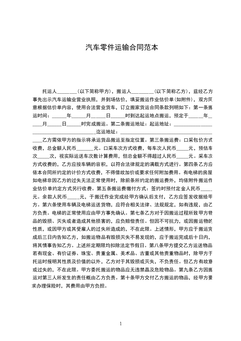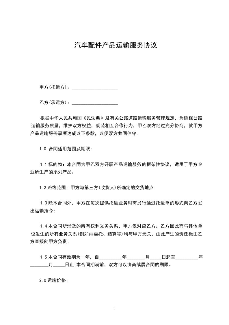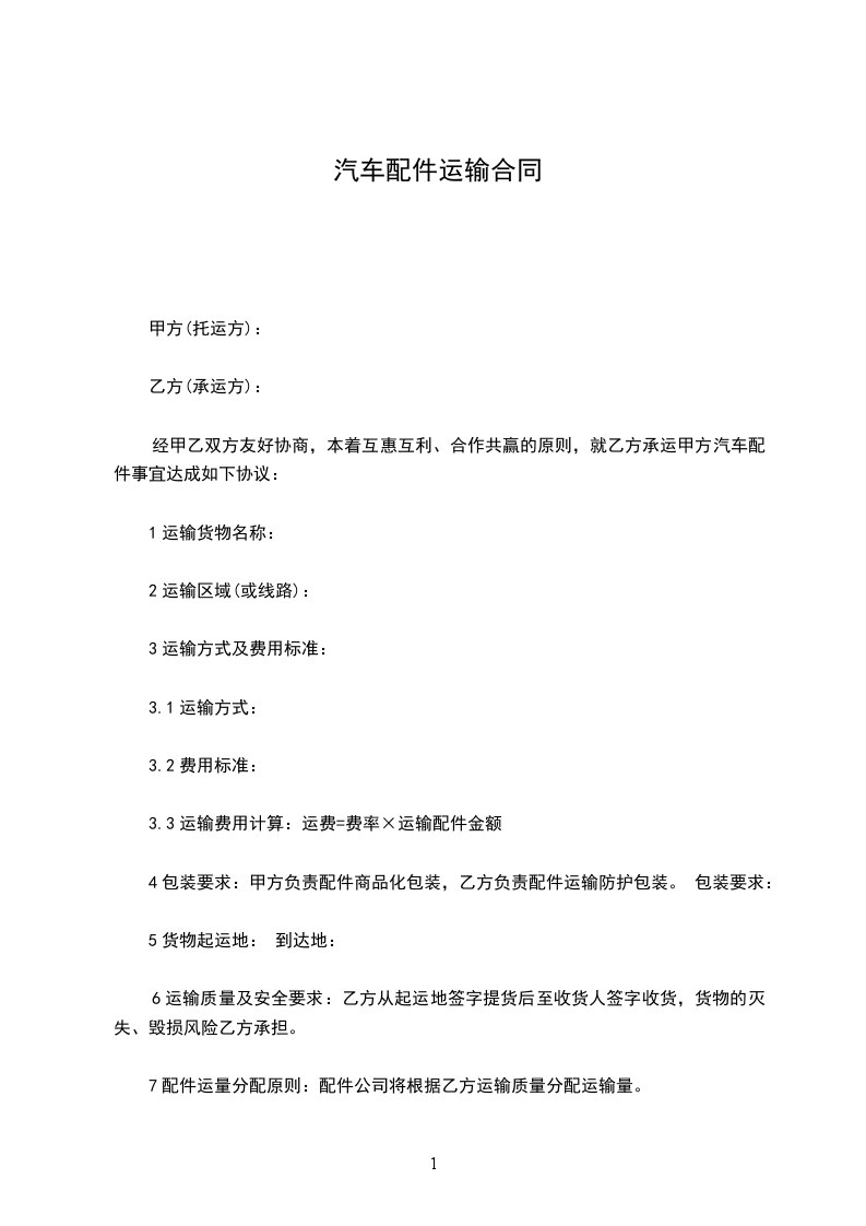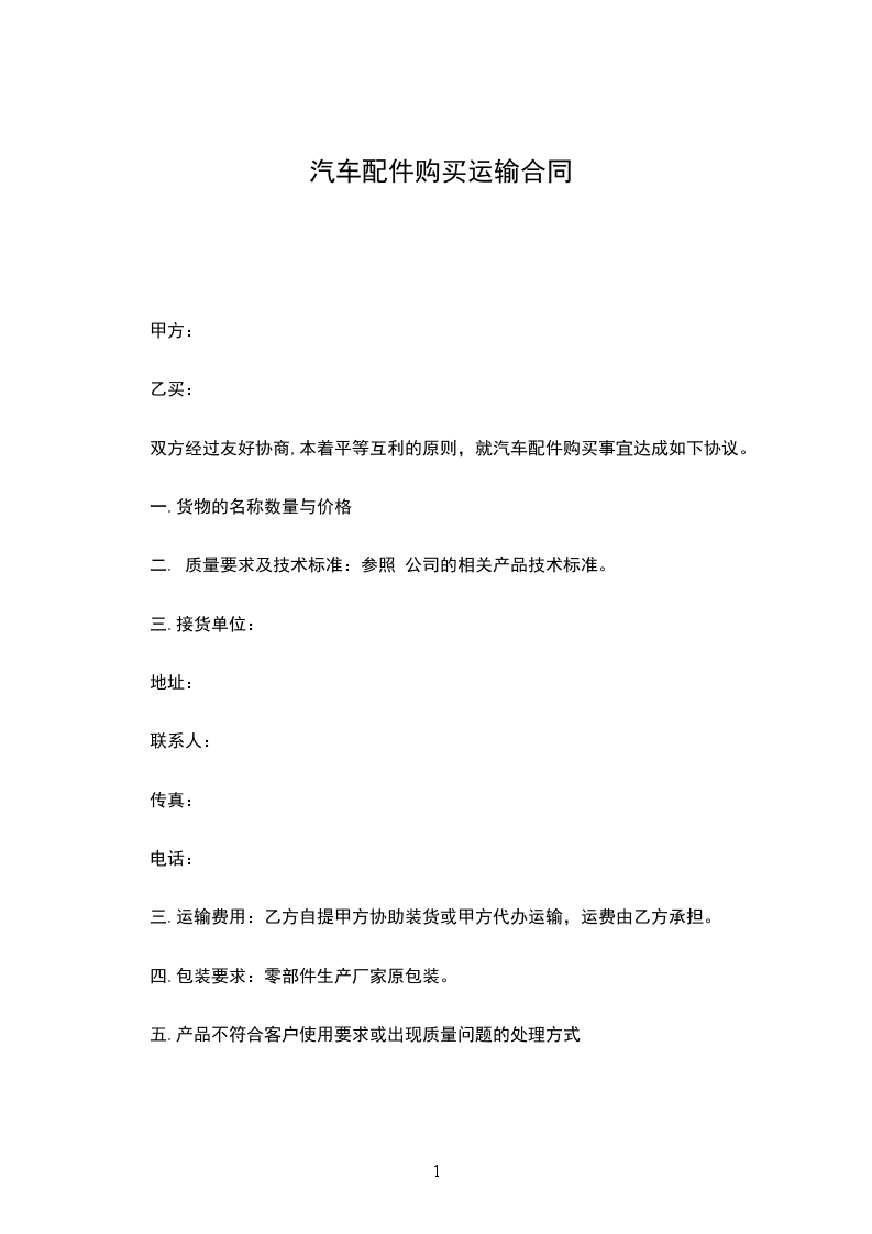 三.运输费用:乙方自提甲方协助装货或甲方代办运输,运费由乙方承担。