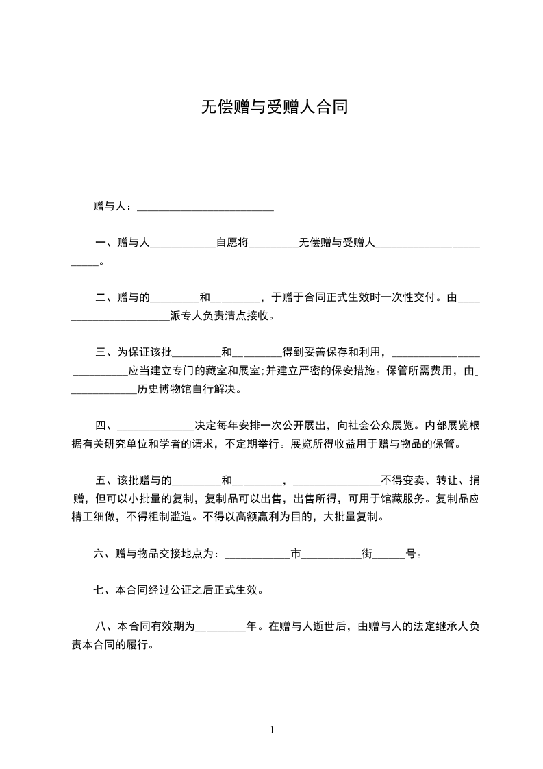 一、甲方将其所有的(标的物)______赠送给乙方,其所有权证明为:(写明证明甲方拥有所有权的证据名称,如赠与房屋,就应有房产所有权证,赠与微机应有购买该微机的发票等)