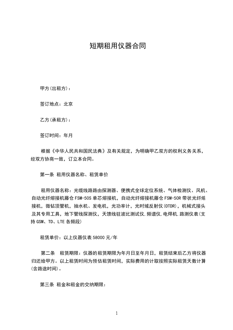 大写()作为押金,所租赁乐器的市场销售价格为人民币大写()。