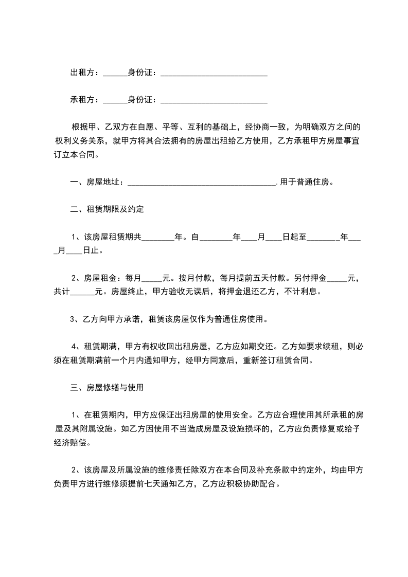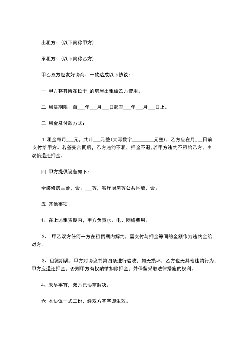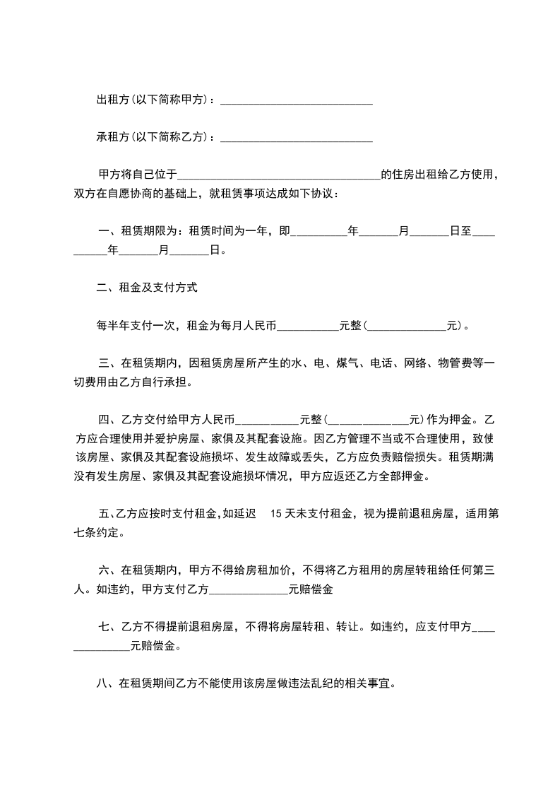 二 租赁期限:自 _____年____月__日到____年____月____日止。