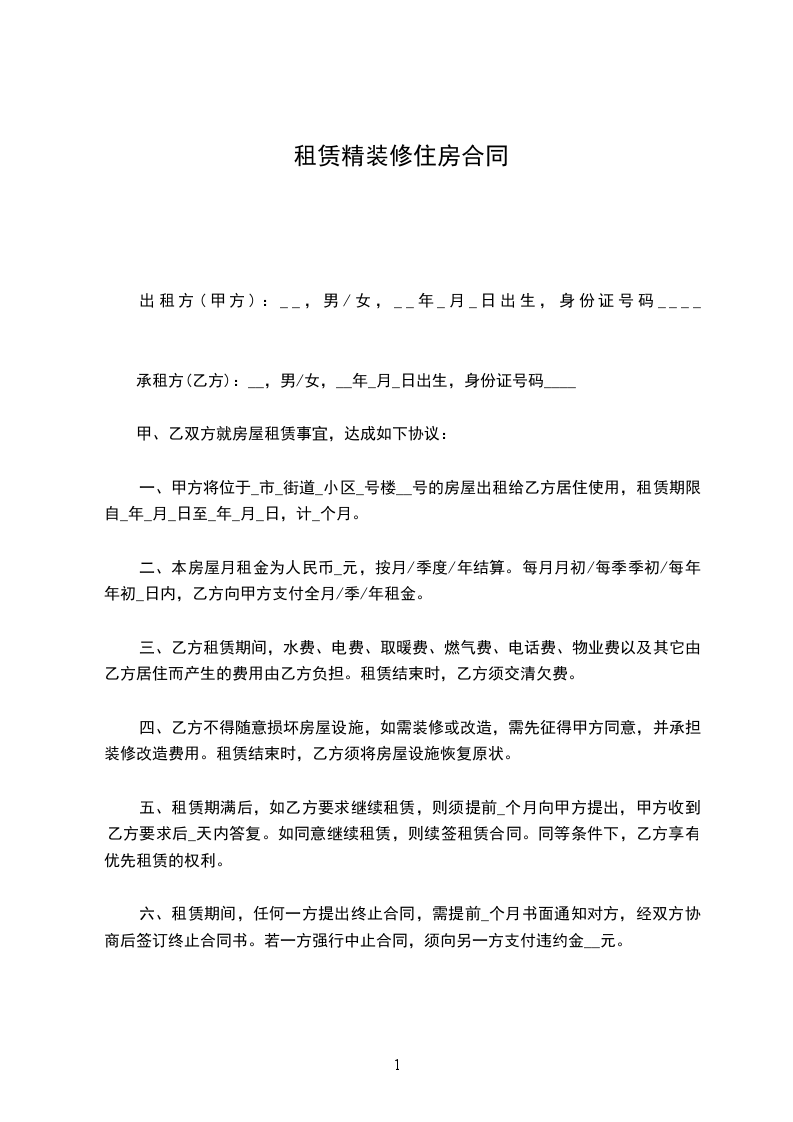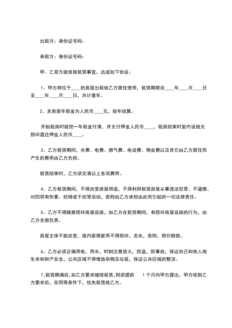六 甲乙双方任何一方在租赁期内解约,必须提前一个月通知对方,否则违约方应支付对方违约金xx元