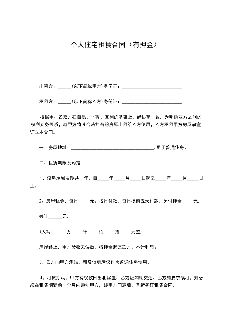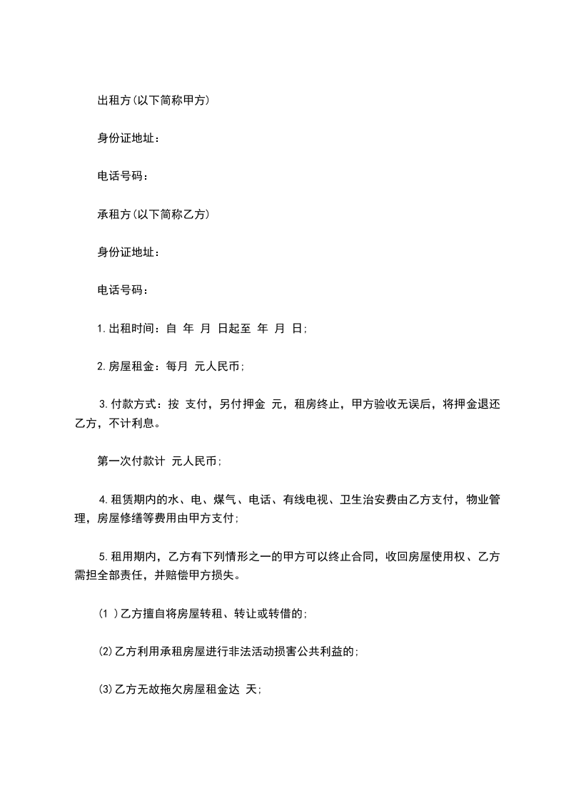 4. 甲方在收到乙方租金(包括押金)后,应开具收据给乙方。