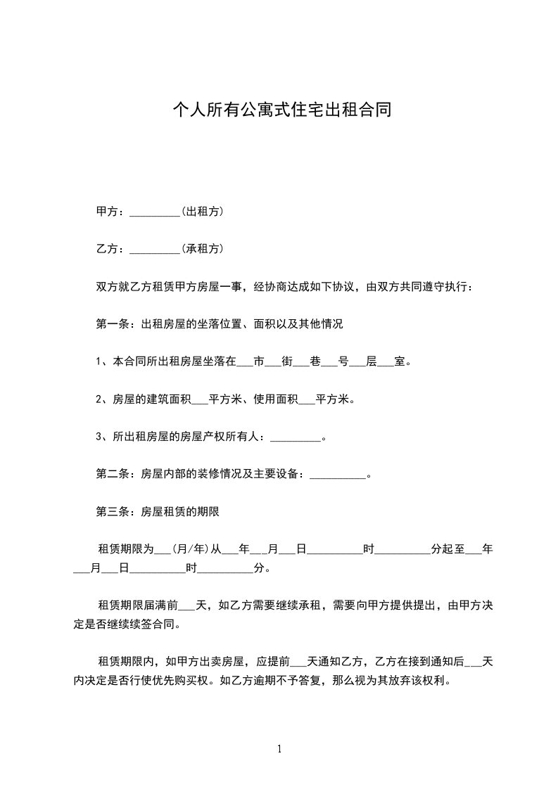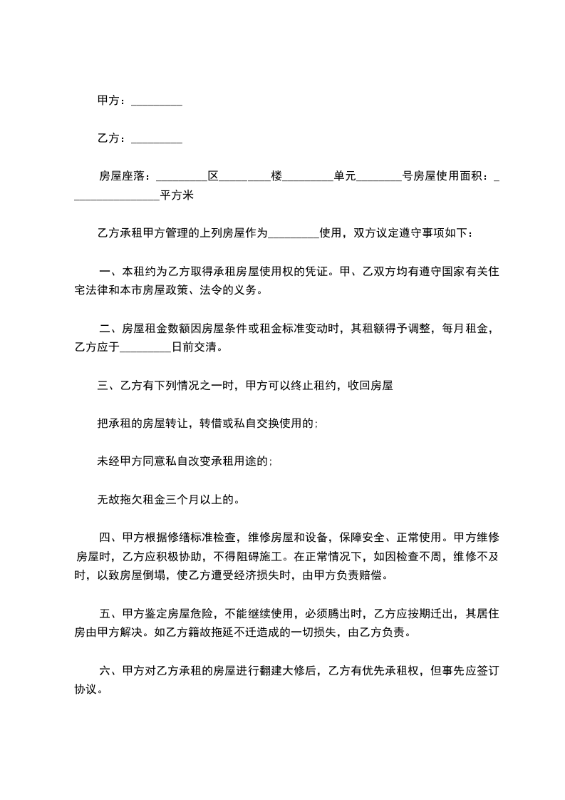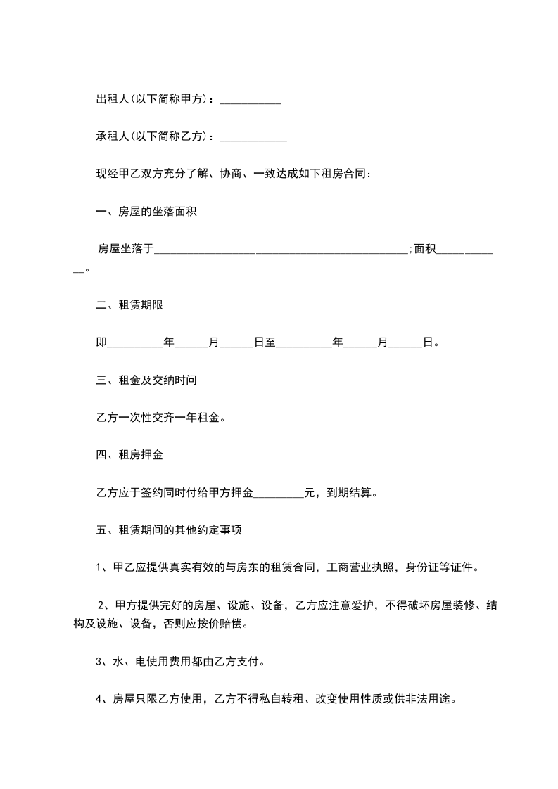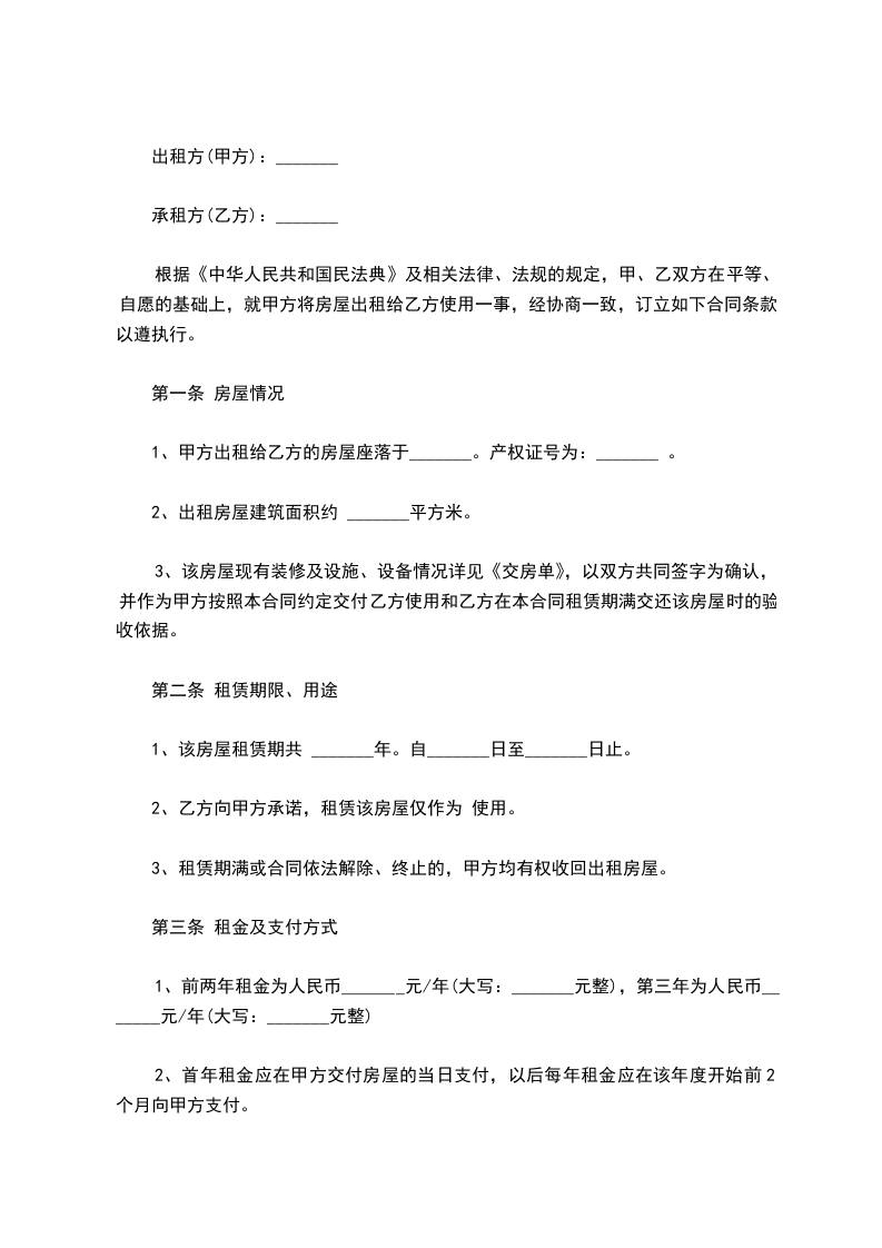 第二条 租赁期限:从 年 月 日至 年 月 日