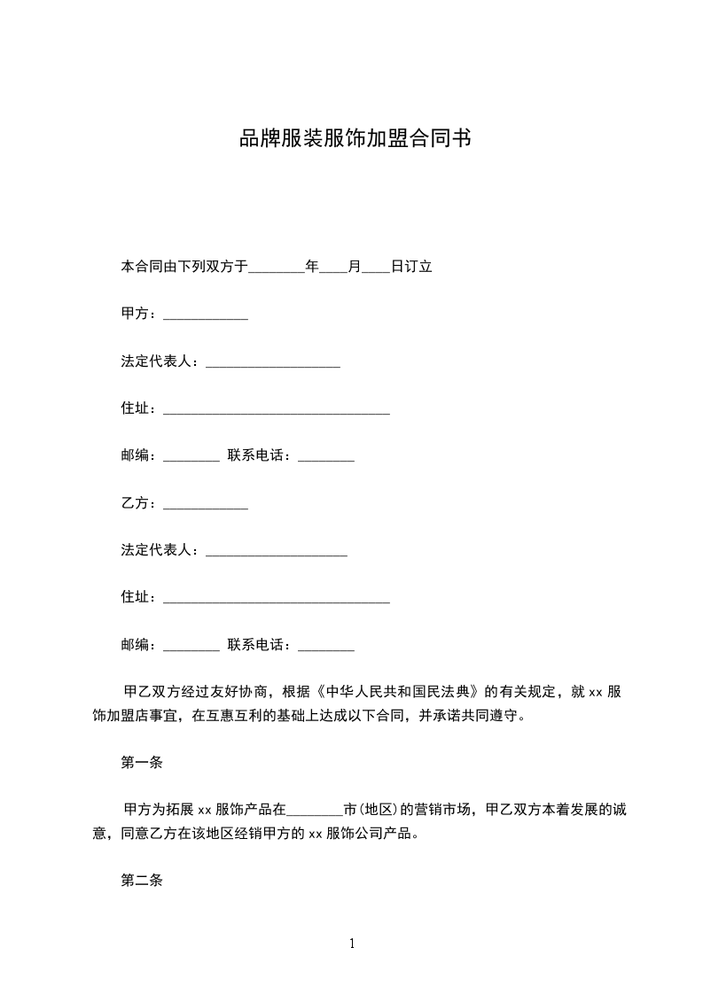 Herlenar 加 盟 协 议 协议编号