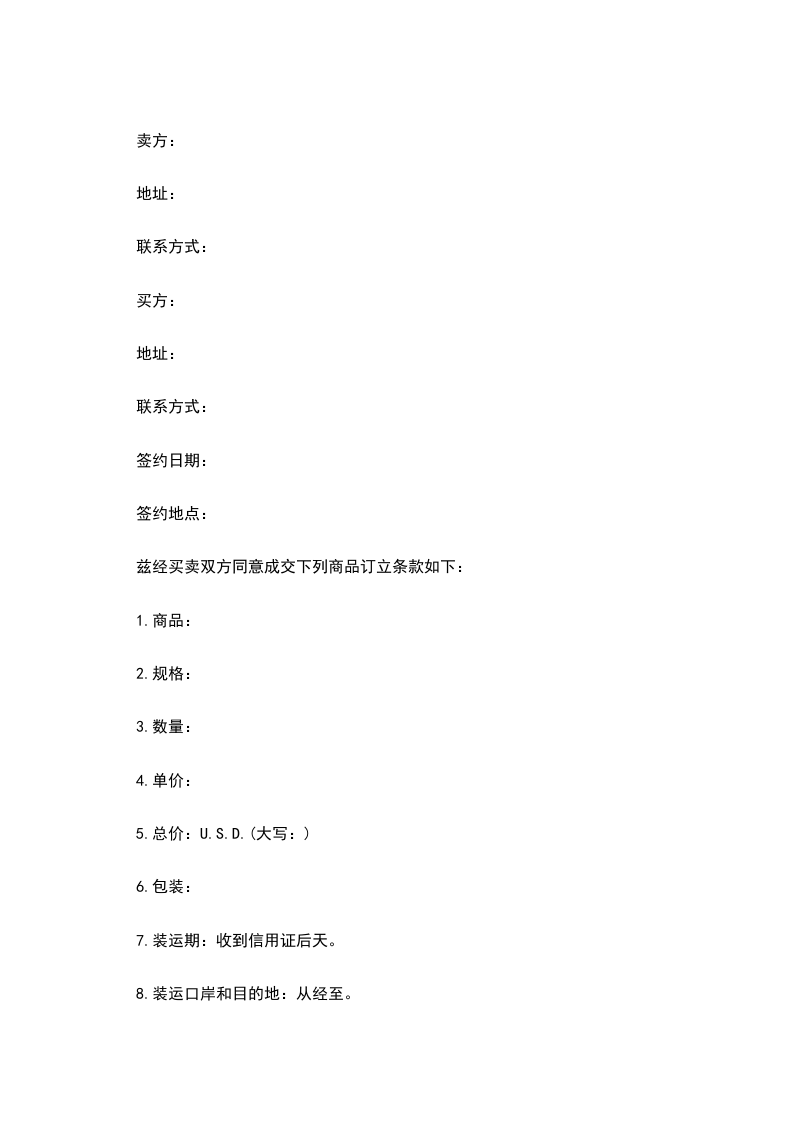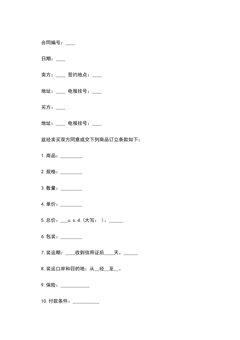 12.注意:开立信用证时请注明合同编号号码。
