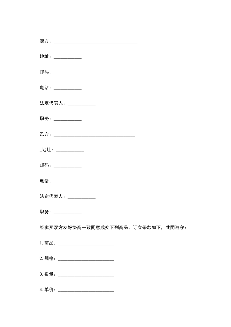 兹经卖买双方同意成交下列商品订立条款如下: