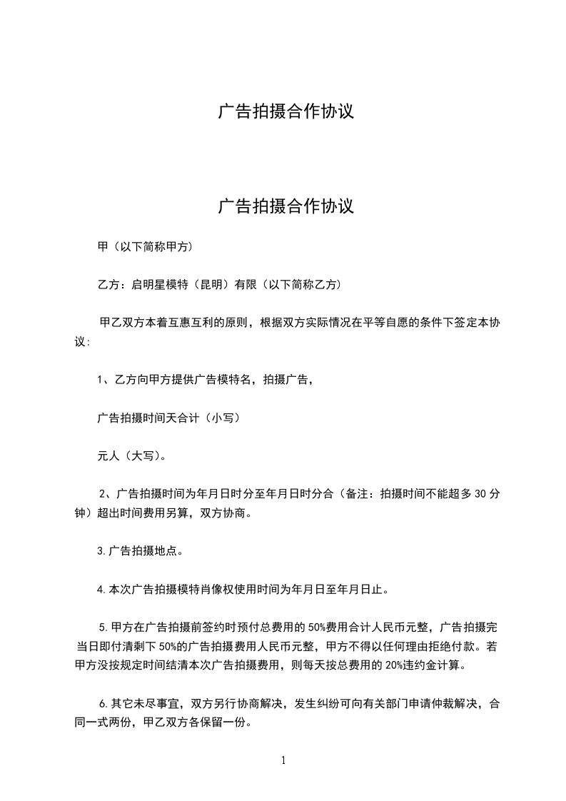 甲乙双方本着互惠互利,友好合作的原则,协商后就拍摄制作平面广告达成以下协议: