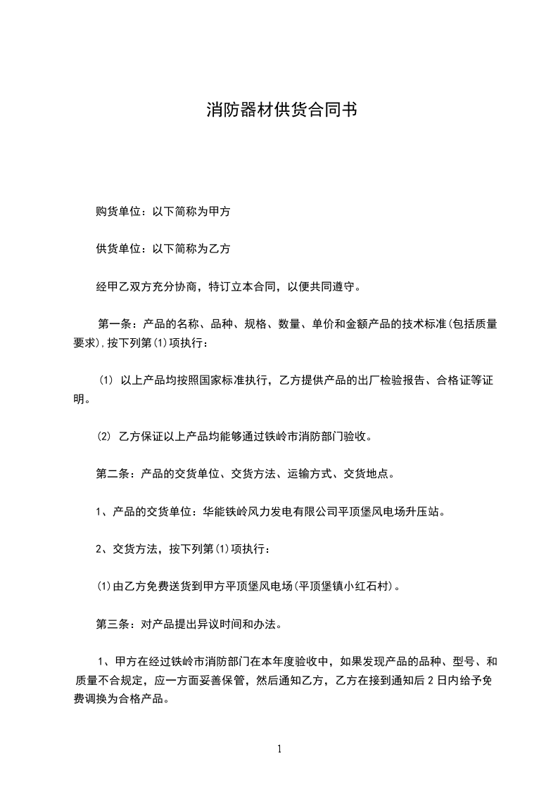1、甲方在经过铁岭市消防部门在本年度验收中,如果发现产品的品种、型号、和质量不合规定,应一方面妥善保管,然后通知乙方,乙方在接到通知后2日内给予免费调换为合格产品。