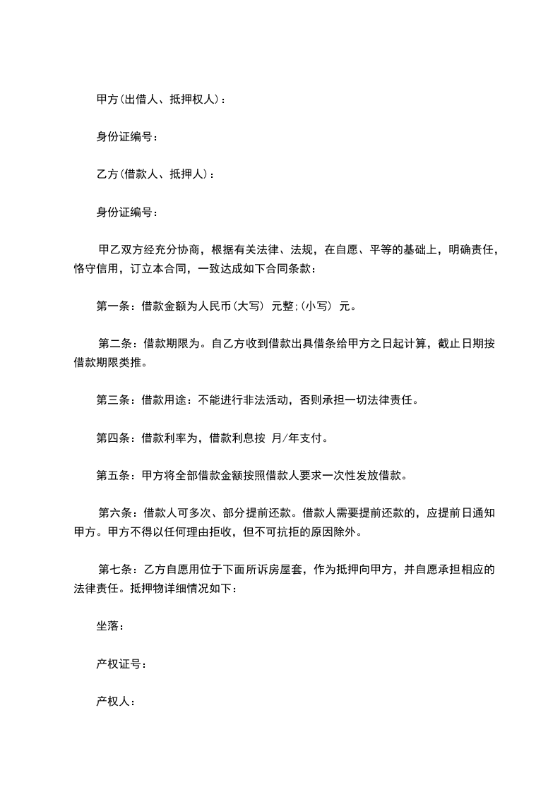 第七条:乙方自愿用位于下面所诉房屋套,作为抵押向甲方,并自愿承担相应的法律责任。抵押物详细情况如下: