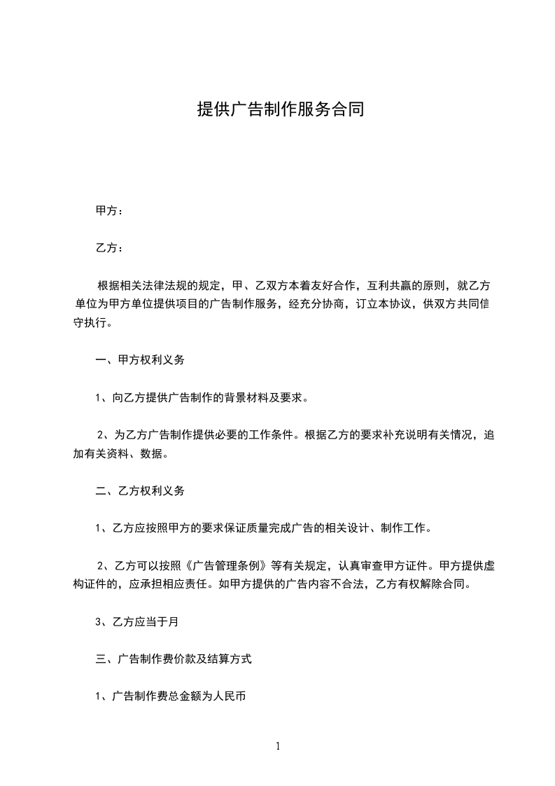 1.甲方向乙方提供营业执照、质量证书、墙体广告样稿。