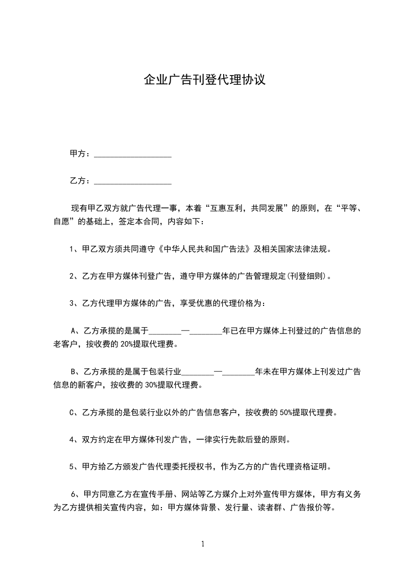 现有甲乙双方就广告代理一事,本着“互惠互利,共同发展”的原则,在“平等、自愿”的基础上,签定本合同,内容如下: