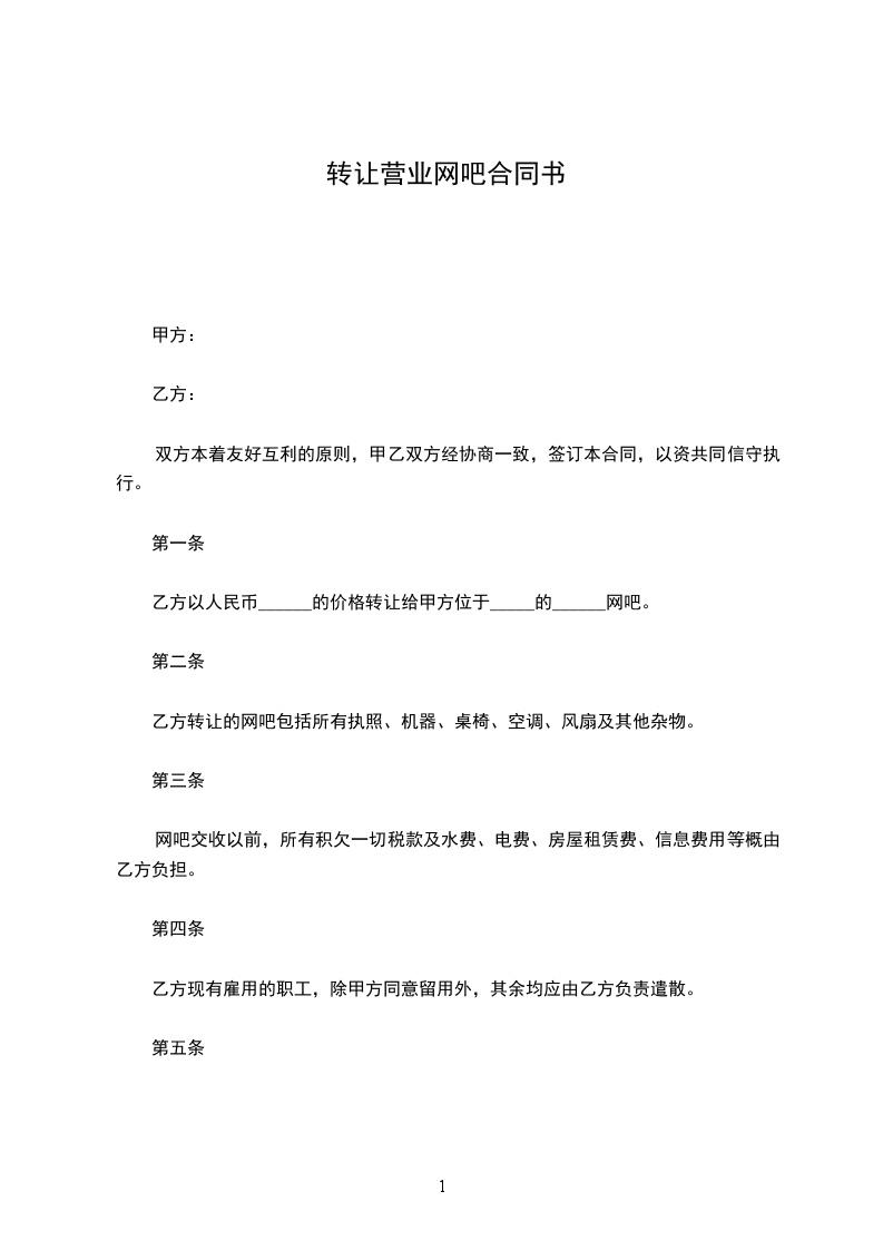 乙方以人民币______的价格转让给甲方位于_____的______网吧。