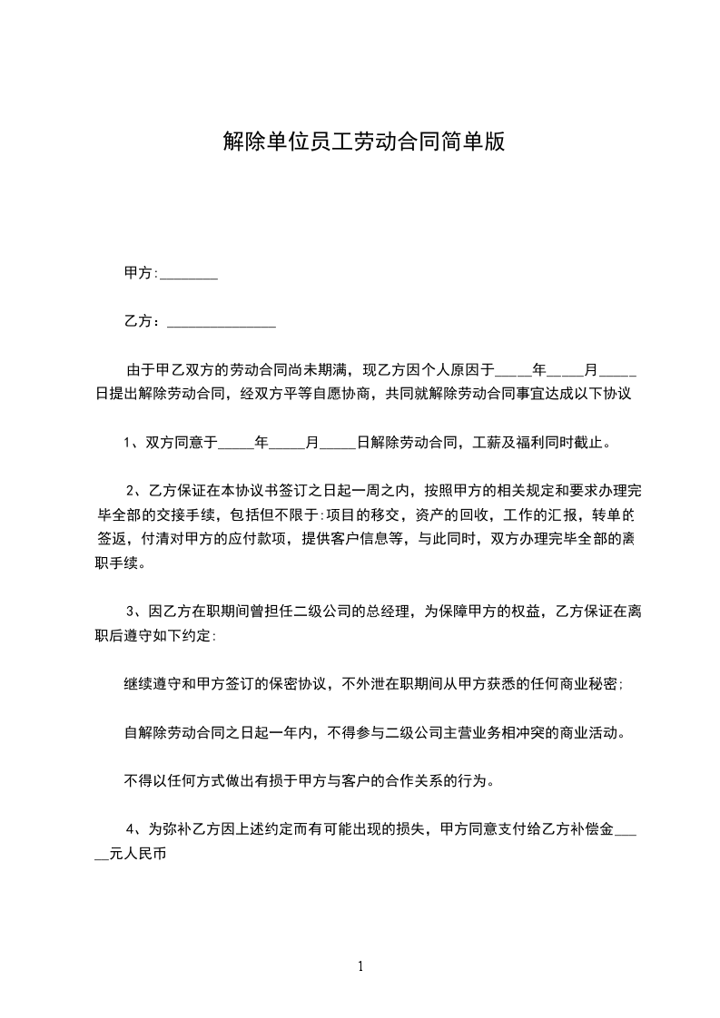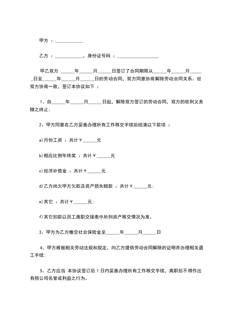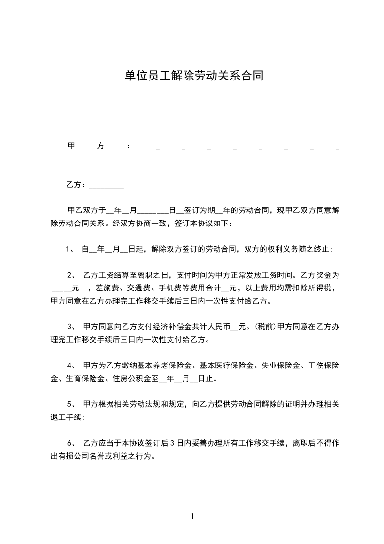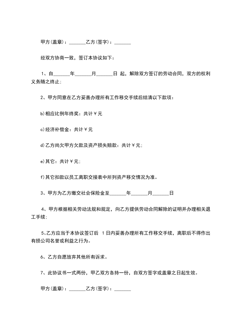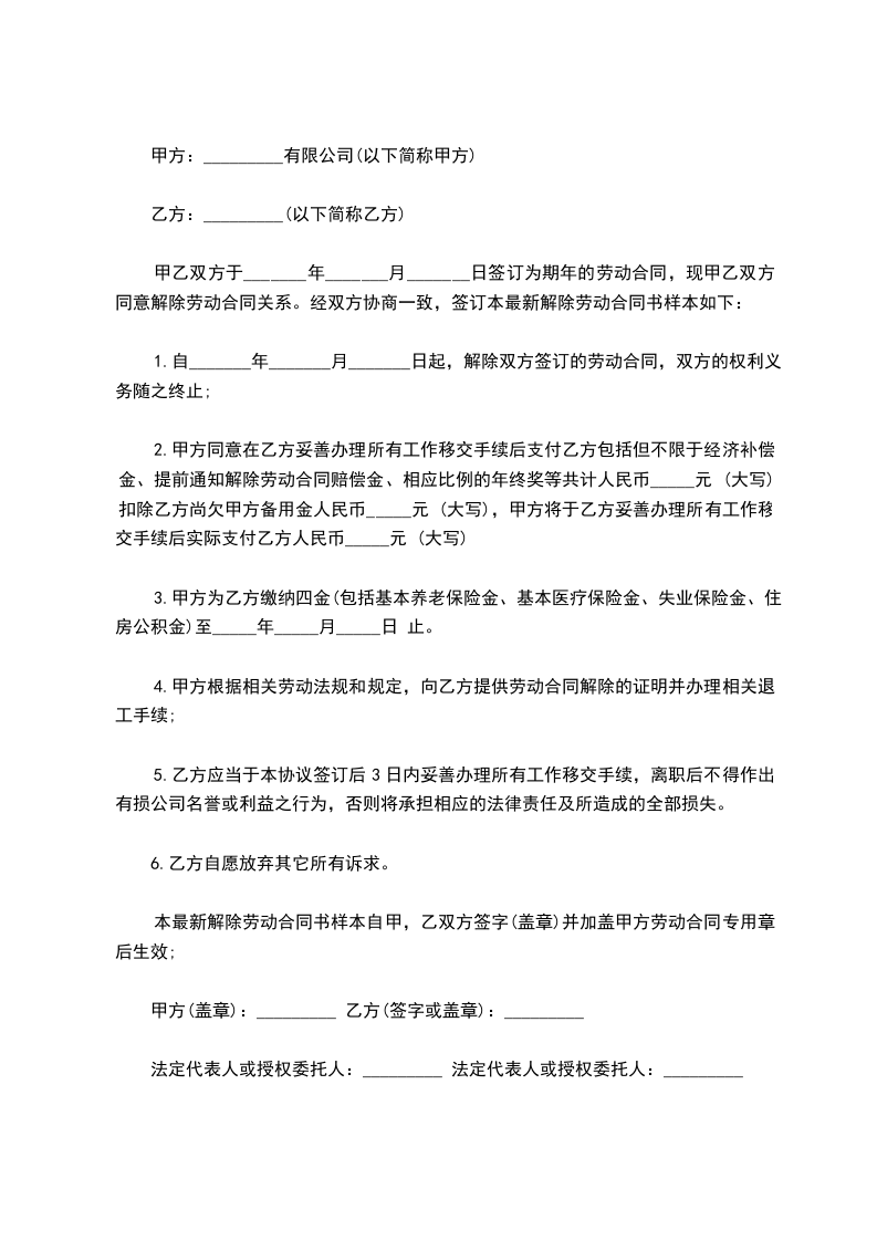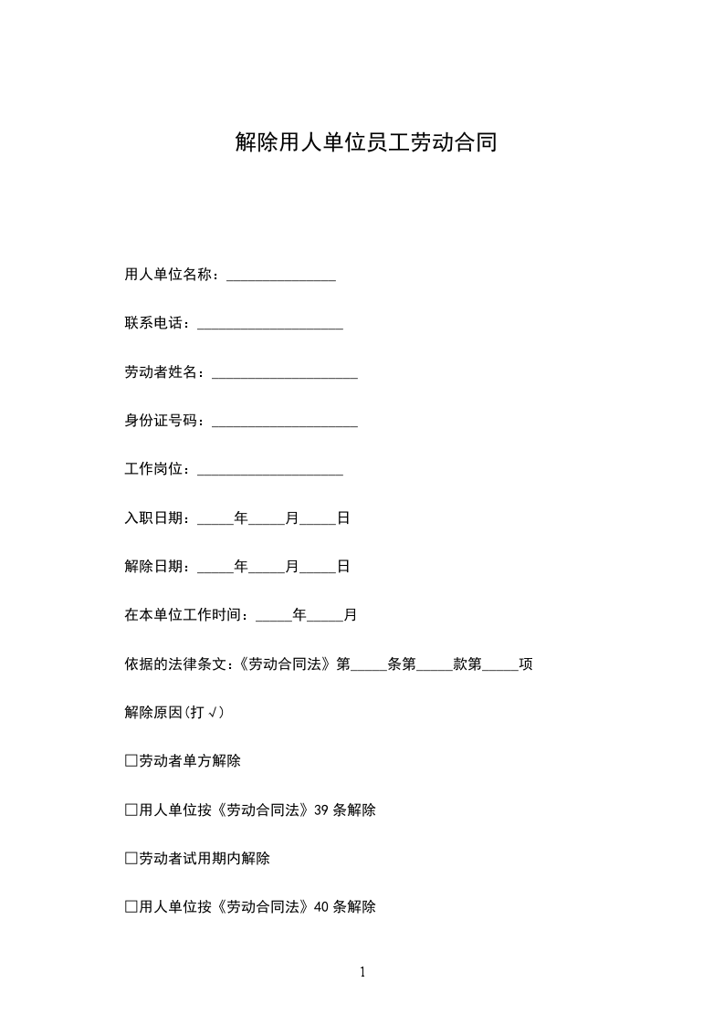 解除日期:_____年_____月_____日
