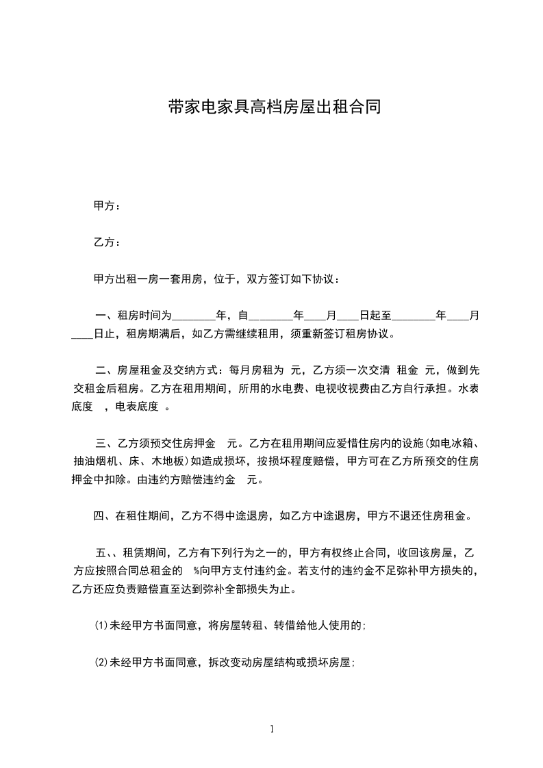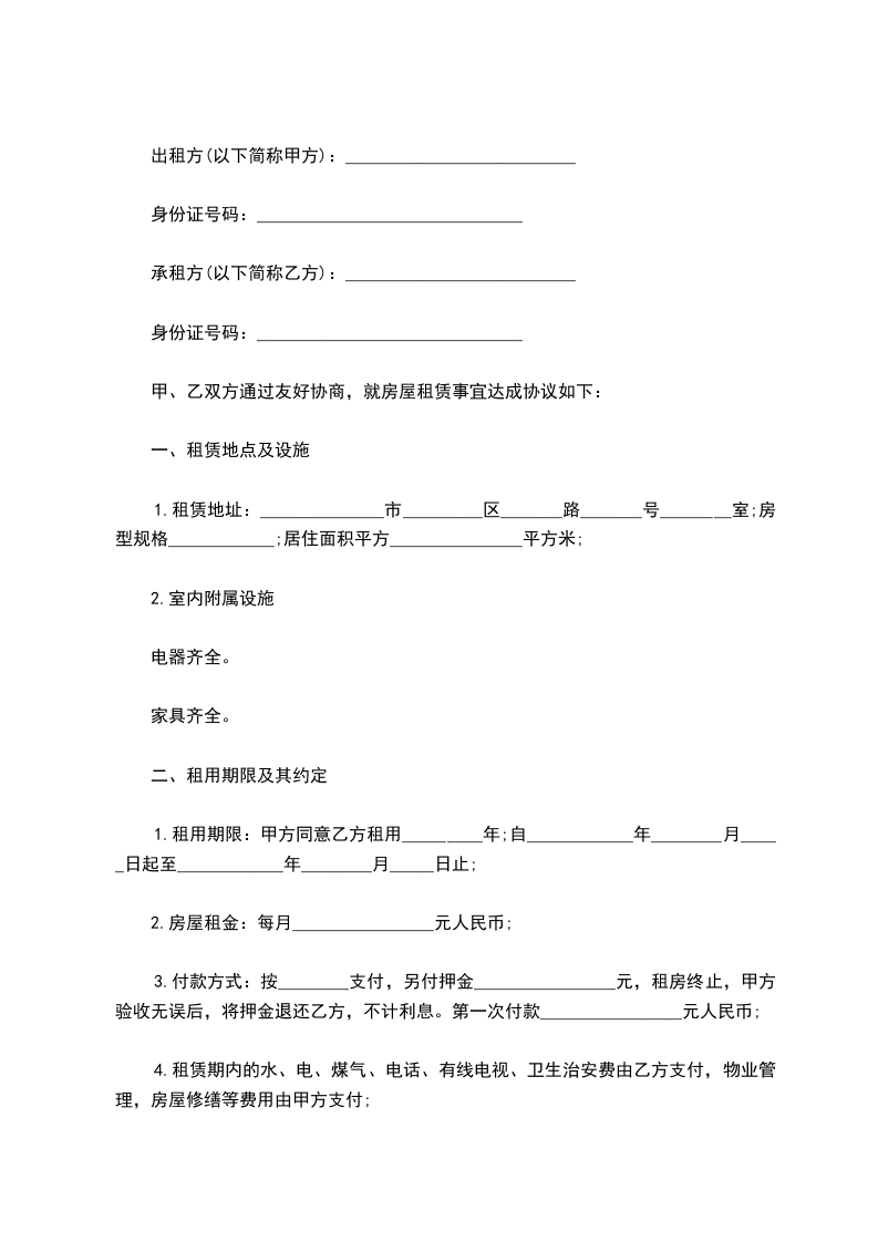五、房屋租赁期为 ,从 年 月 日至 年 月 日。在此期间,任何一方要求终止合同,须提前三个月通知对方,并偿付对方总租金 的违约金;如果甲方转让该房屋,乙方有优先购买权。