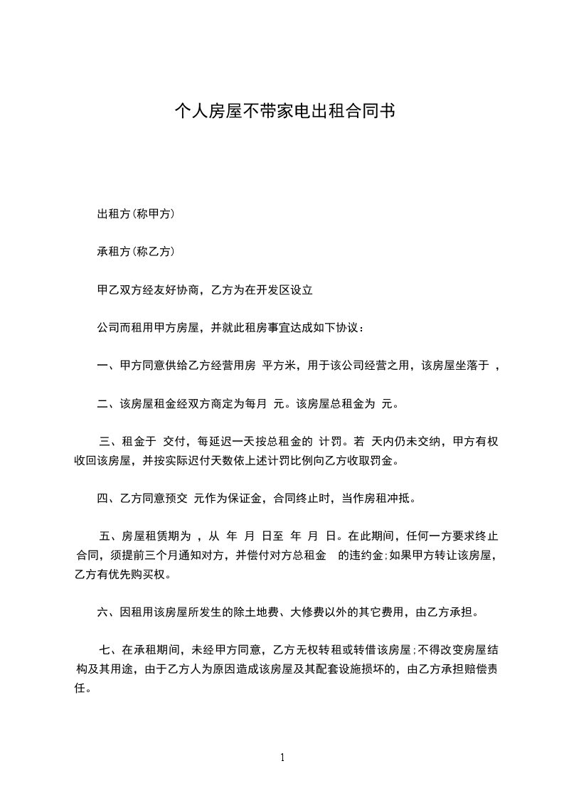 七、在承租期间,未经甲方同意,乙方无权转租或转借该房屋;不得改变房屋结构及其用途,由于乙方人为原因造成该房屋及其配套设施损坏的,由乙方承担赔偿责任。