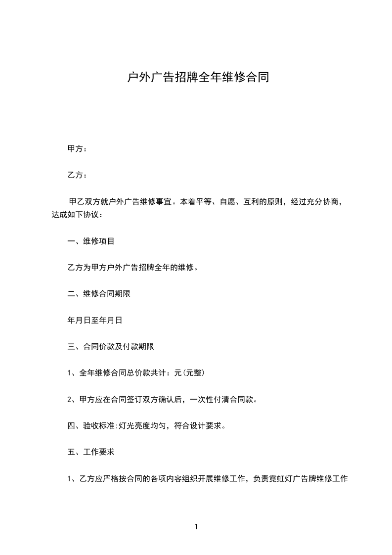 乙方为甲方户外广告招牌全年的维修。