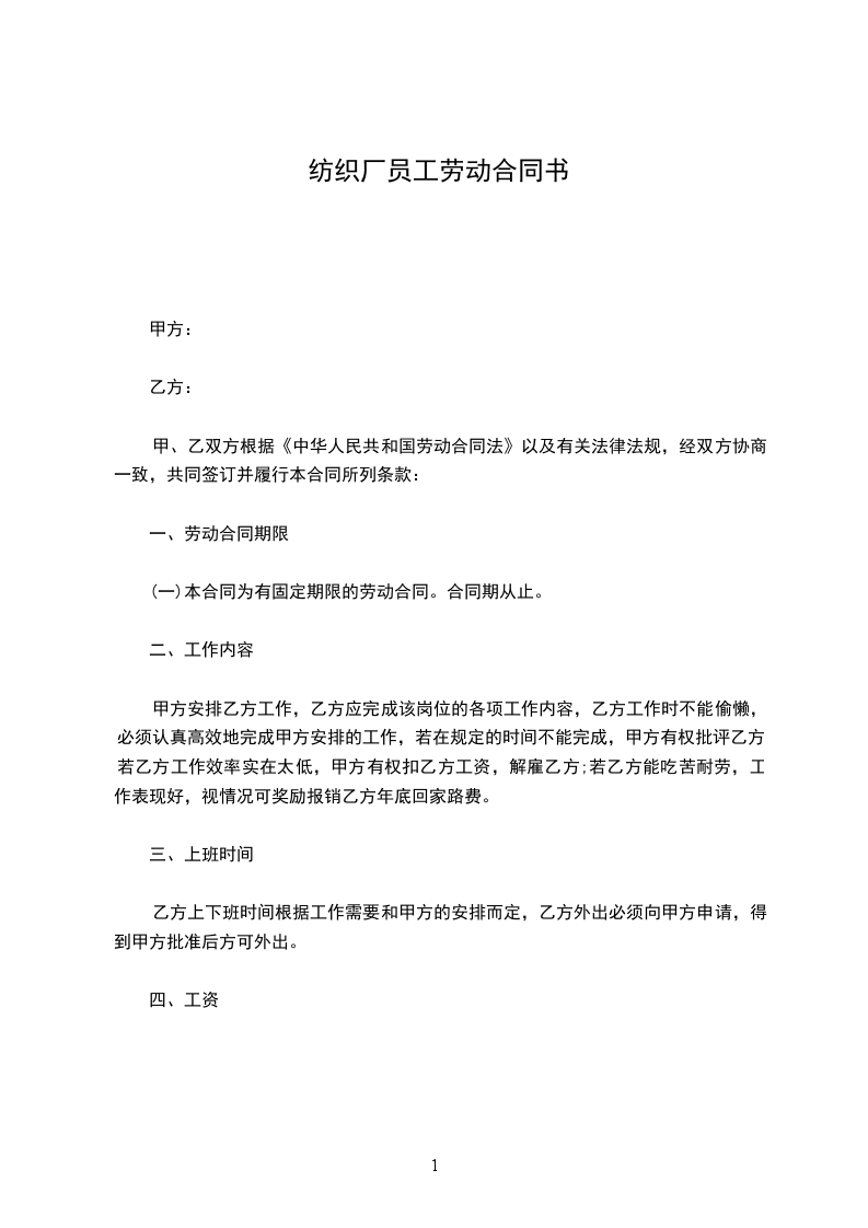 (一)本合同为有固定期限的劳动合同。合同期从止。
