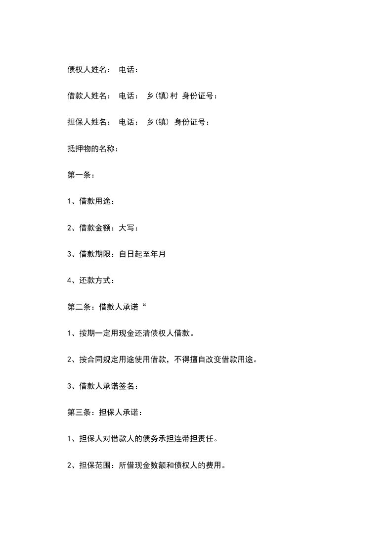 借款人姓名: 电话: 乡(镇)村 身份证号: