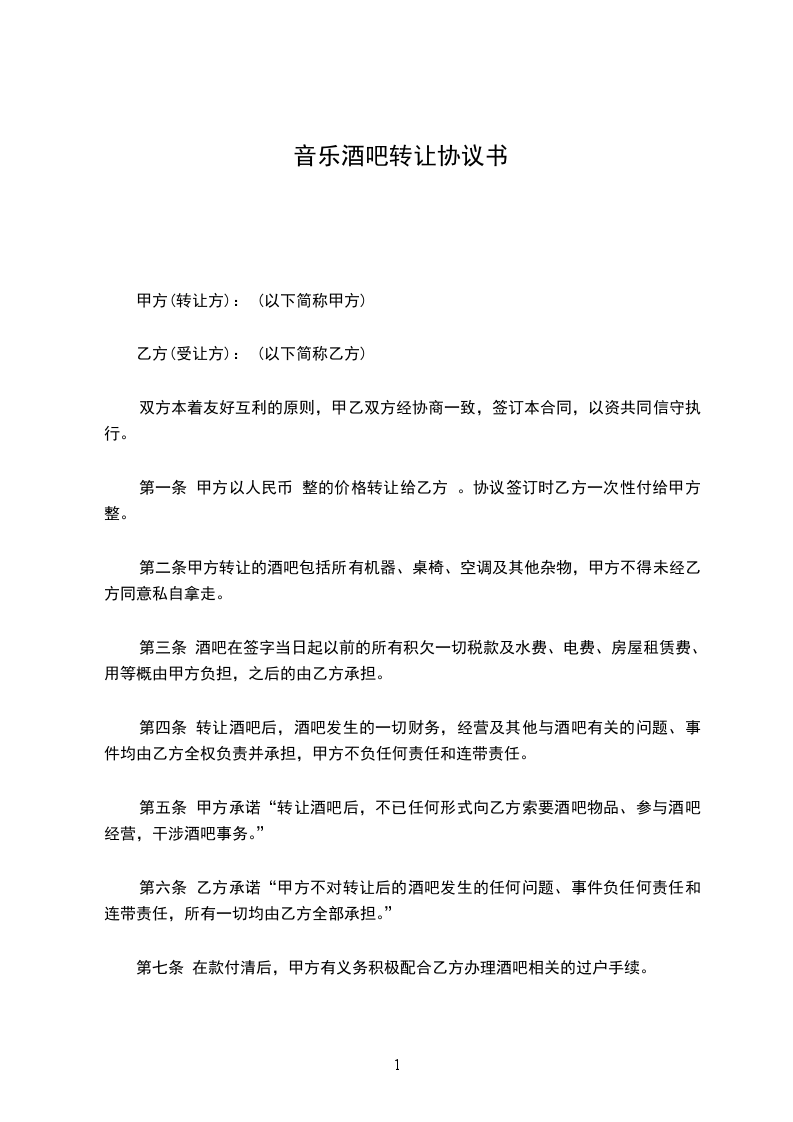 第七条 在款付清后,甲方有义务积极配合乙方办理酒吧相关的过户手续。