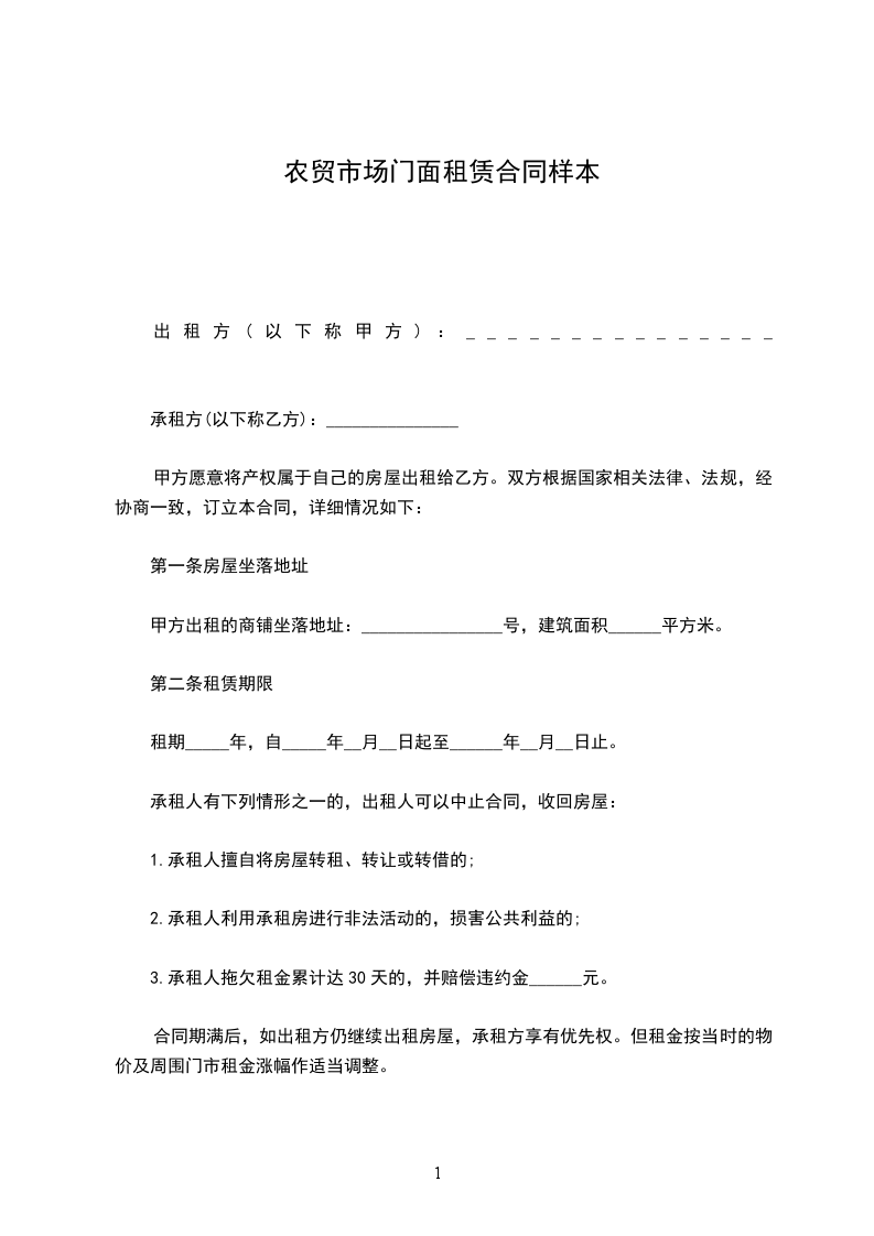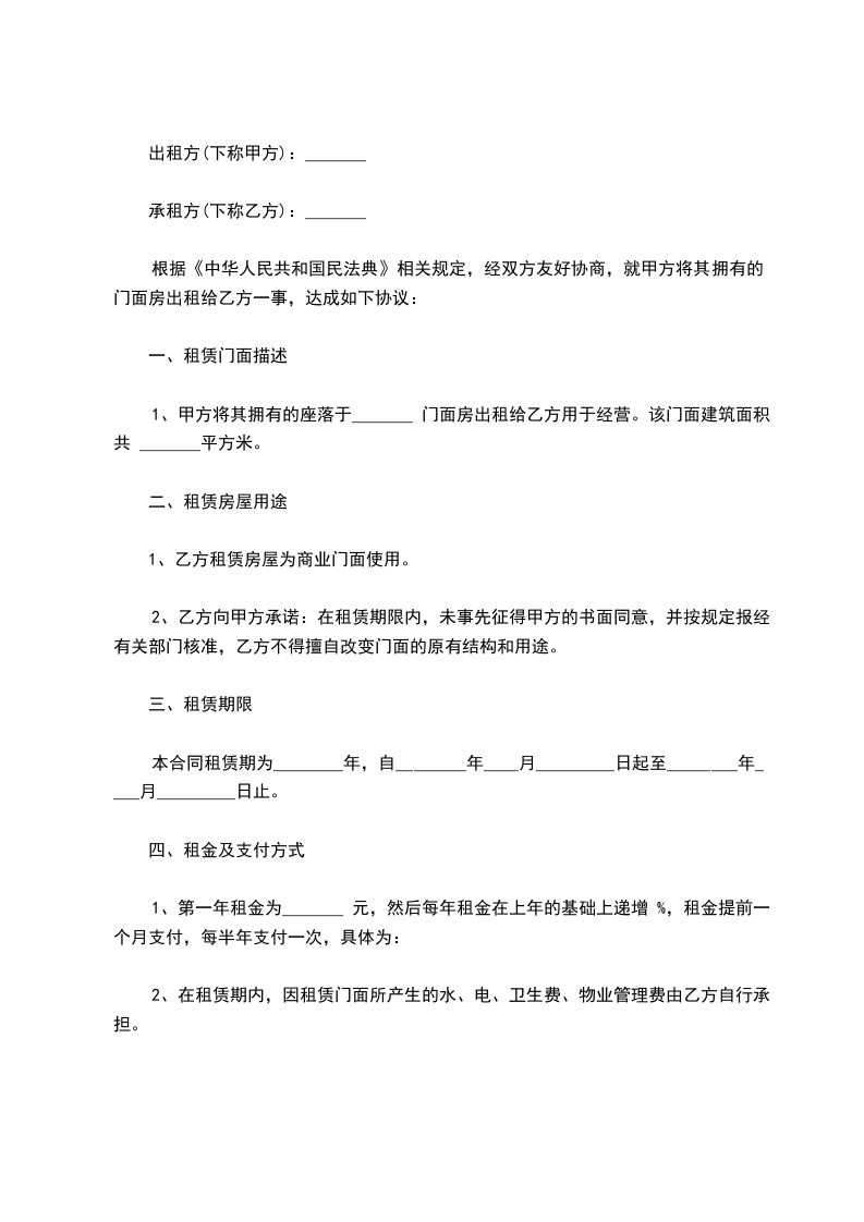 一、租赁房屋座落地点:___市___路门面房___号