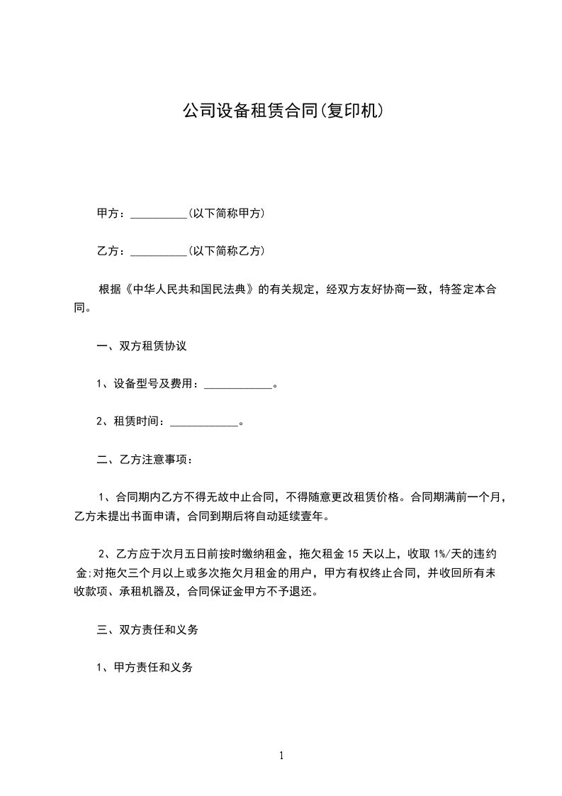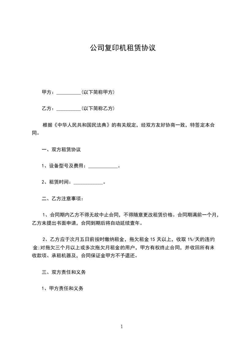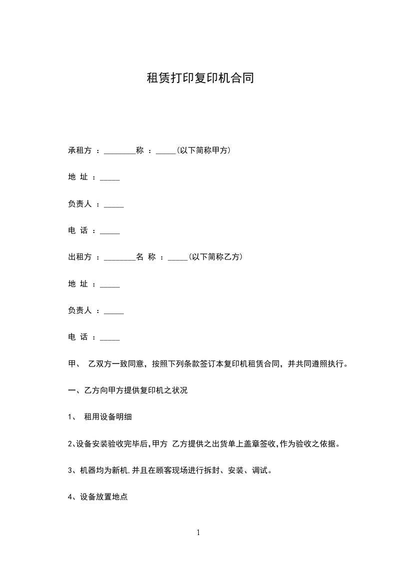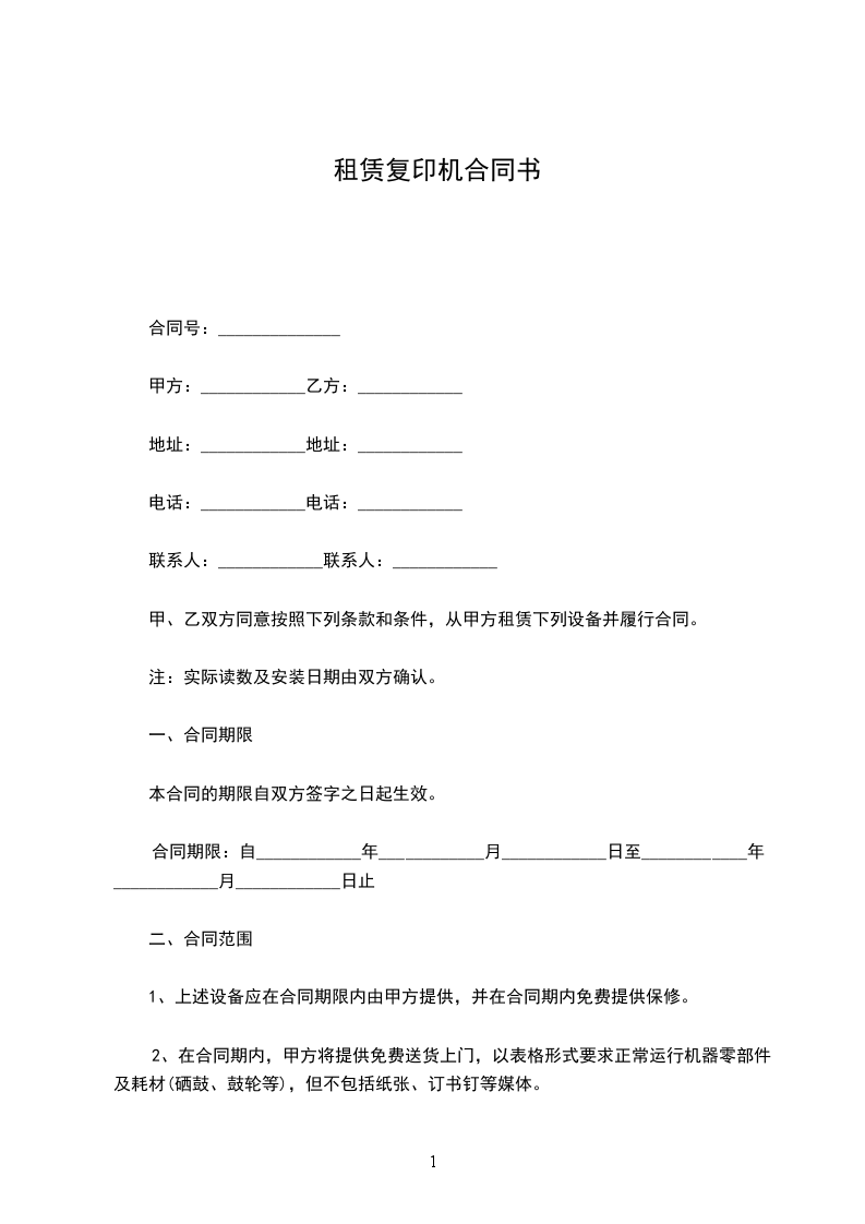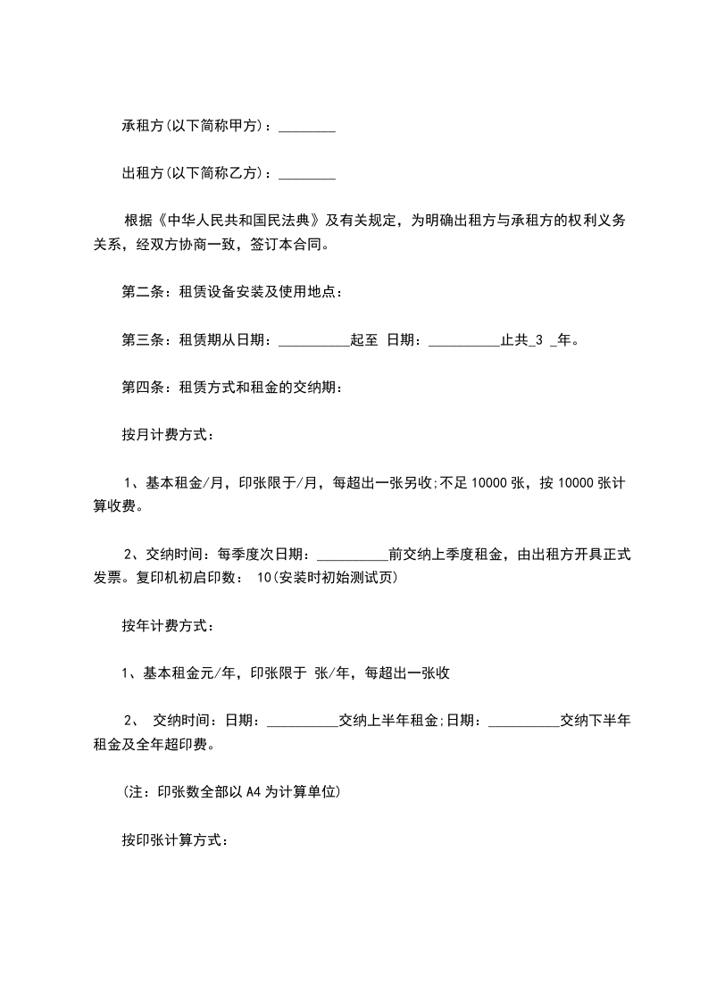 1、甲方提供复印机型号为________新价值为_______元。原复印数______张。
