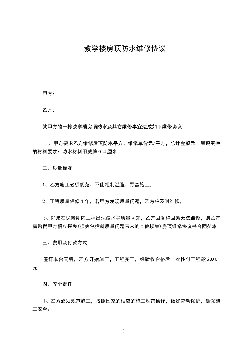 就甲方的一栋教学楼房顶防水及其它维修事宜达成如下维修协议: