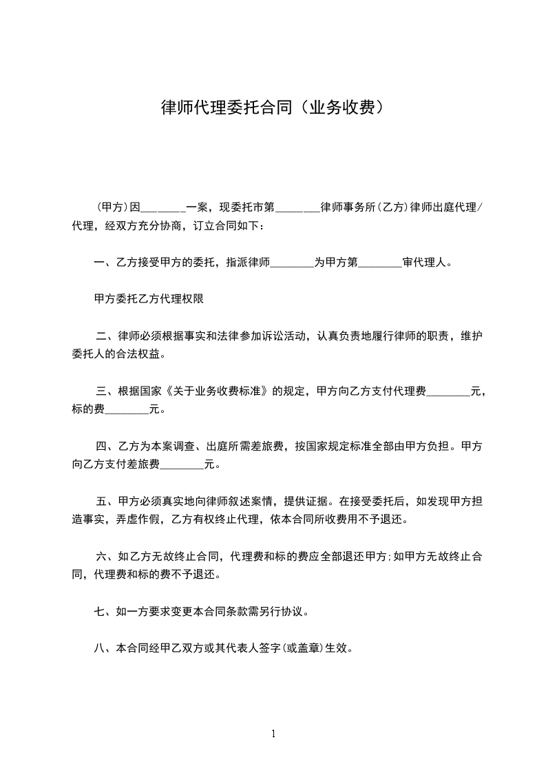 (甲方)因________一案,现委托市第________律师事务所(乙方)律师出庭代理/代理,经双方充分协商,订立合同如下: