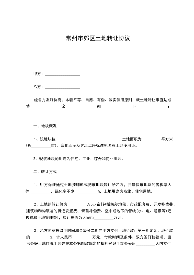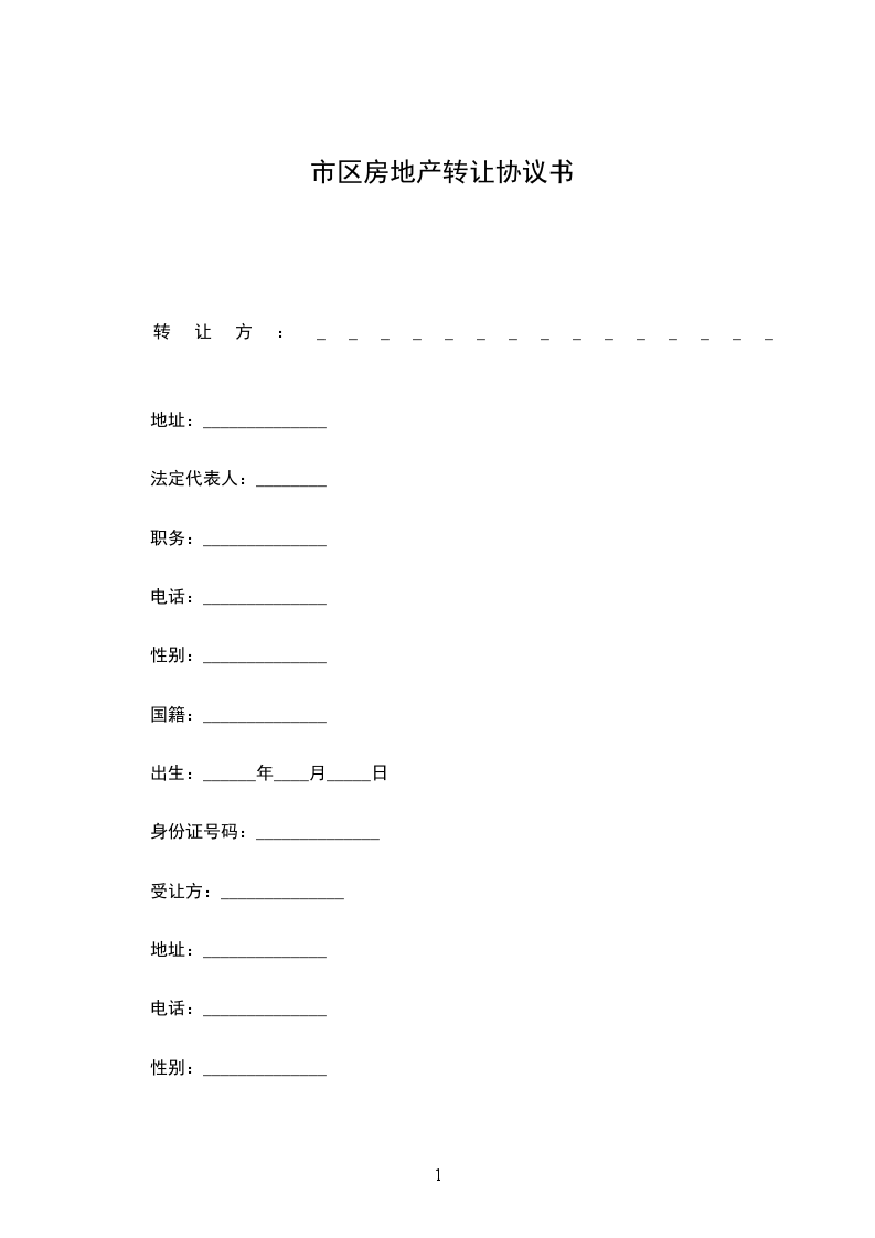 四、转让价格:该房产双方议定总价款为_____元(大写) 。