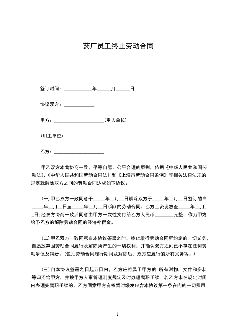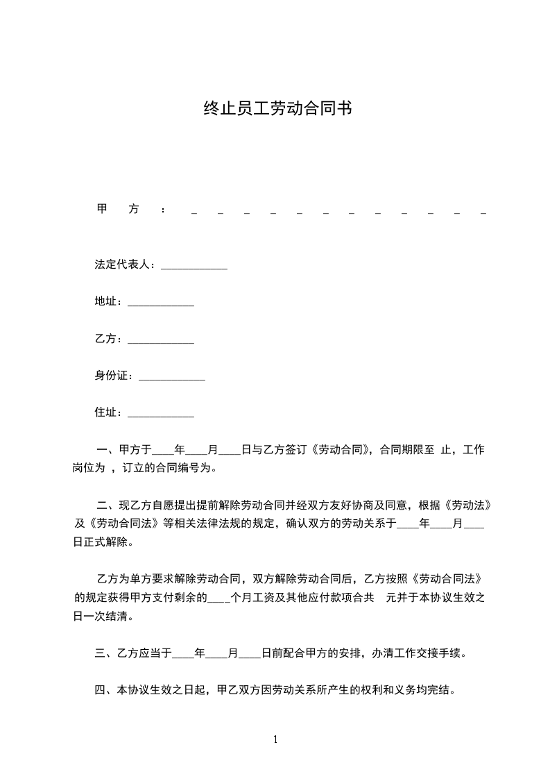 二、现乙方自愿提出提前解除劳动合同并经双方友好协商及同意,根据《劳动法》及《劳动合同法》等相关法律法规的规定,确认双方的劳动关系于____年____月____日正式解除。