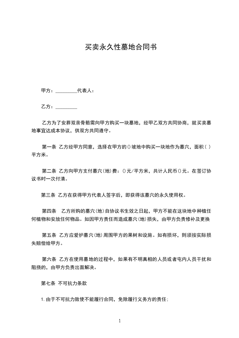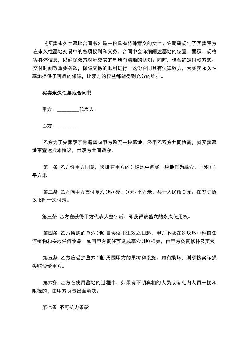 第三条 乙方在获得甲方代表人签字后,即获得该墓穴的永久使用权。