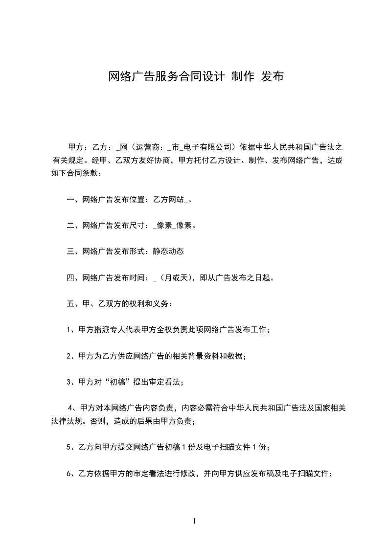 3、乙方向甲方提交网络服务制作初稿1份及电子浏览文件1份;