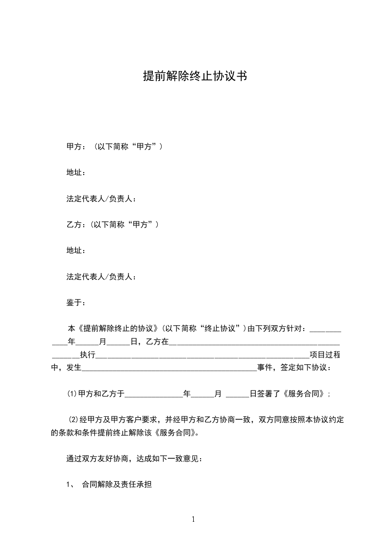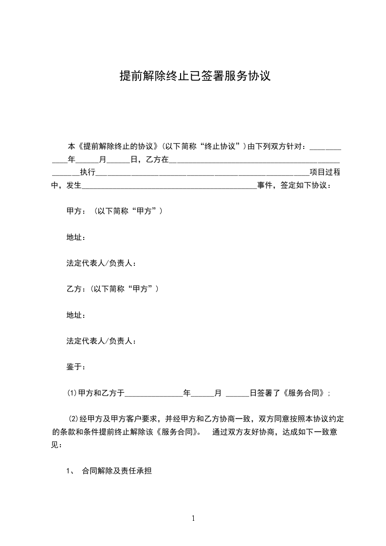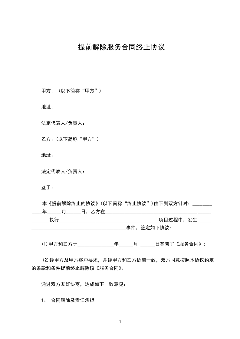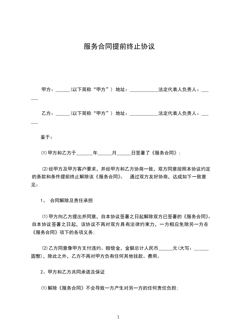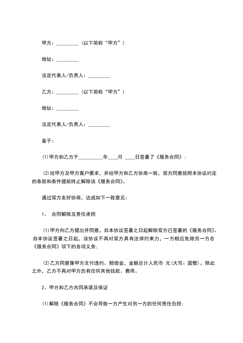 (1)甲方向乙方提出并同意,自本协议签署之日起解除双方已签署的《服务合同》。自本协议签署之日起,该协议不再对双方具有法律约束力,一方相应免除另一方在《服务合同》项下的各项义务;
