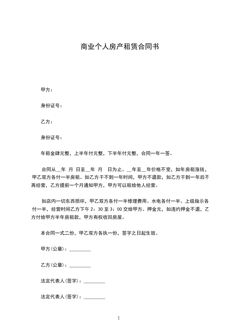 4、乙方同意预交 元作为保证金,合同终止时,当作房租冲抵。