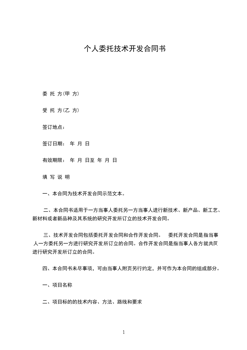 一、本合同为技术开发合同示范文本。
