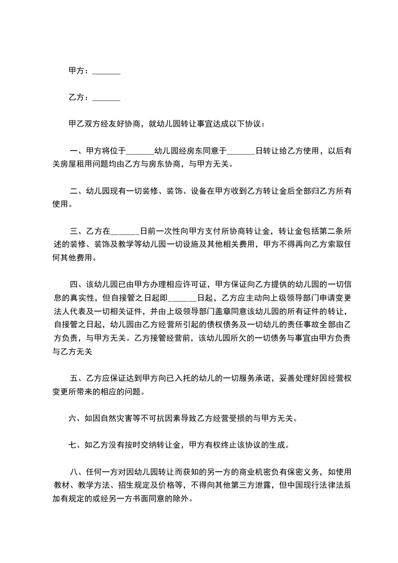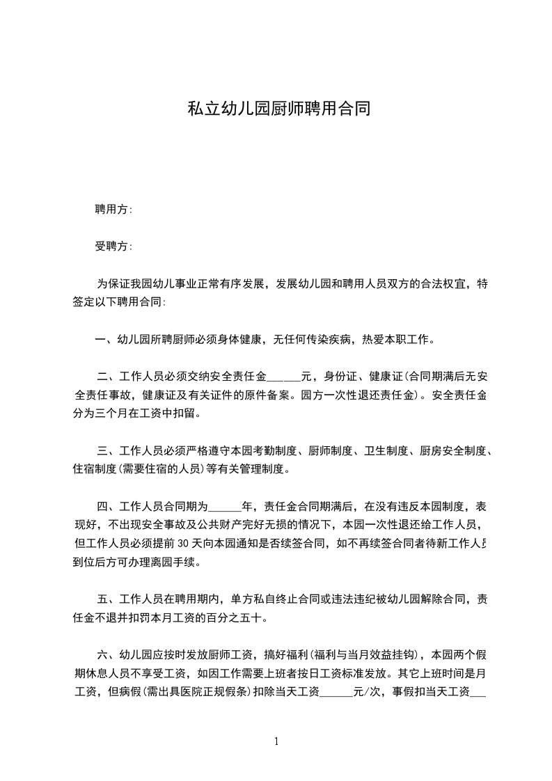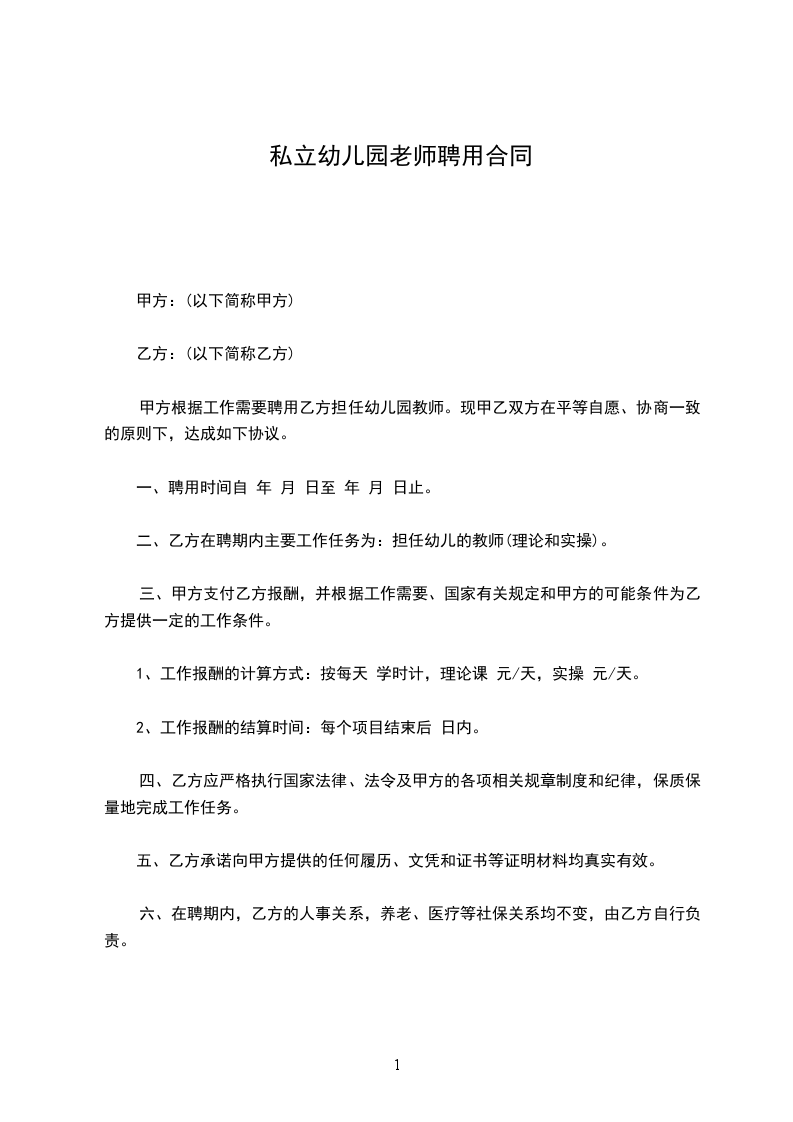 甲方根据工作需要聘用乙方担任幼儿园教师。现甲乙双方在平等自愿、协商一致的原则下,达成如下协议。