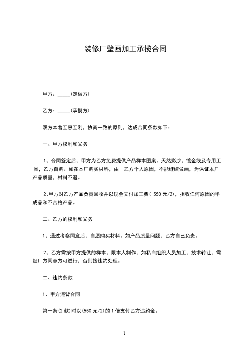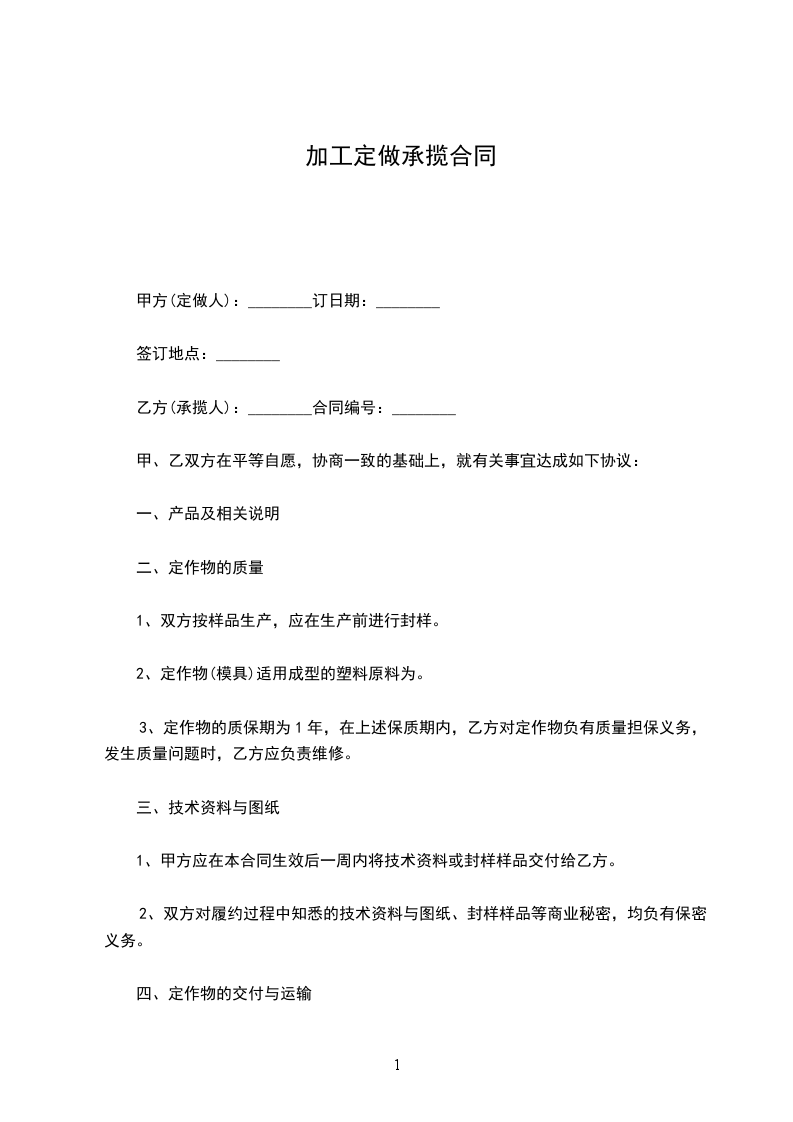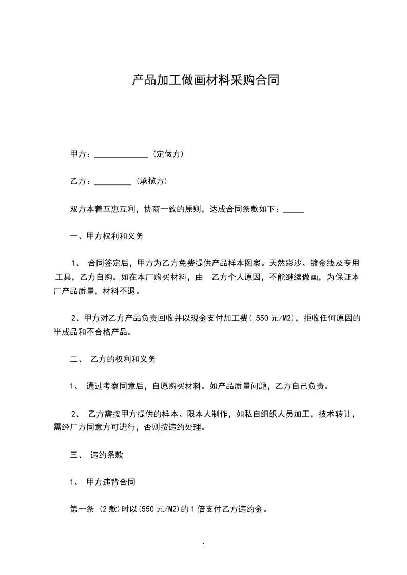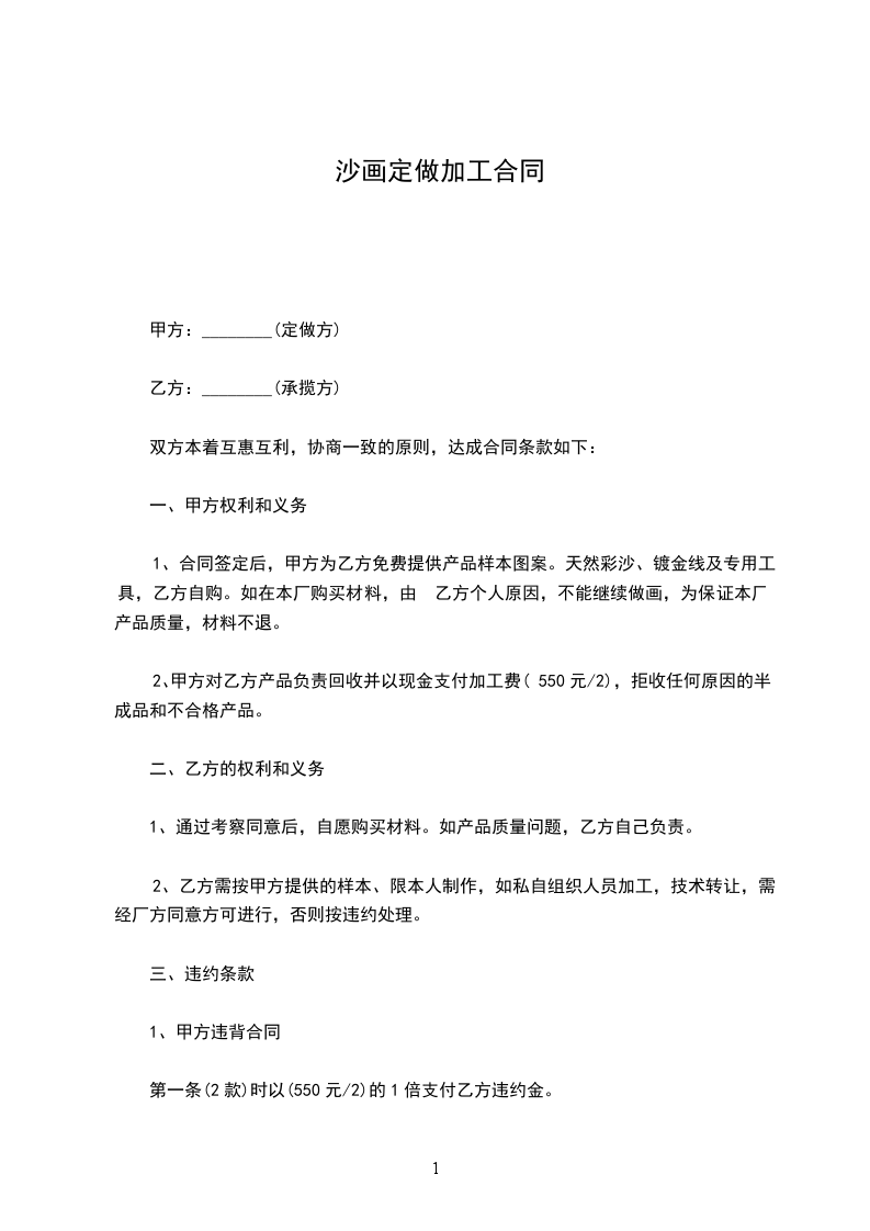 加工 ,双方本着互惠互利,协商一致的原则,达成合同条款如下: