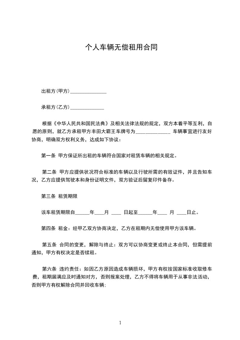 1、甲方为无偿使用该车辆,不支付任何租赁费用;