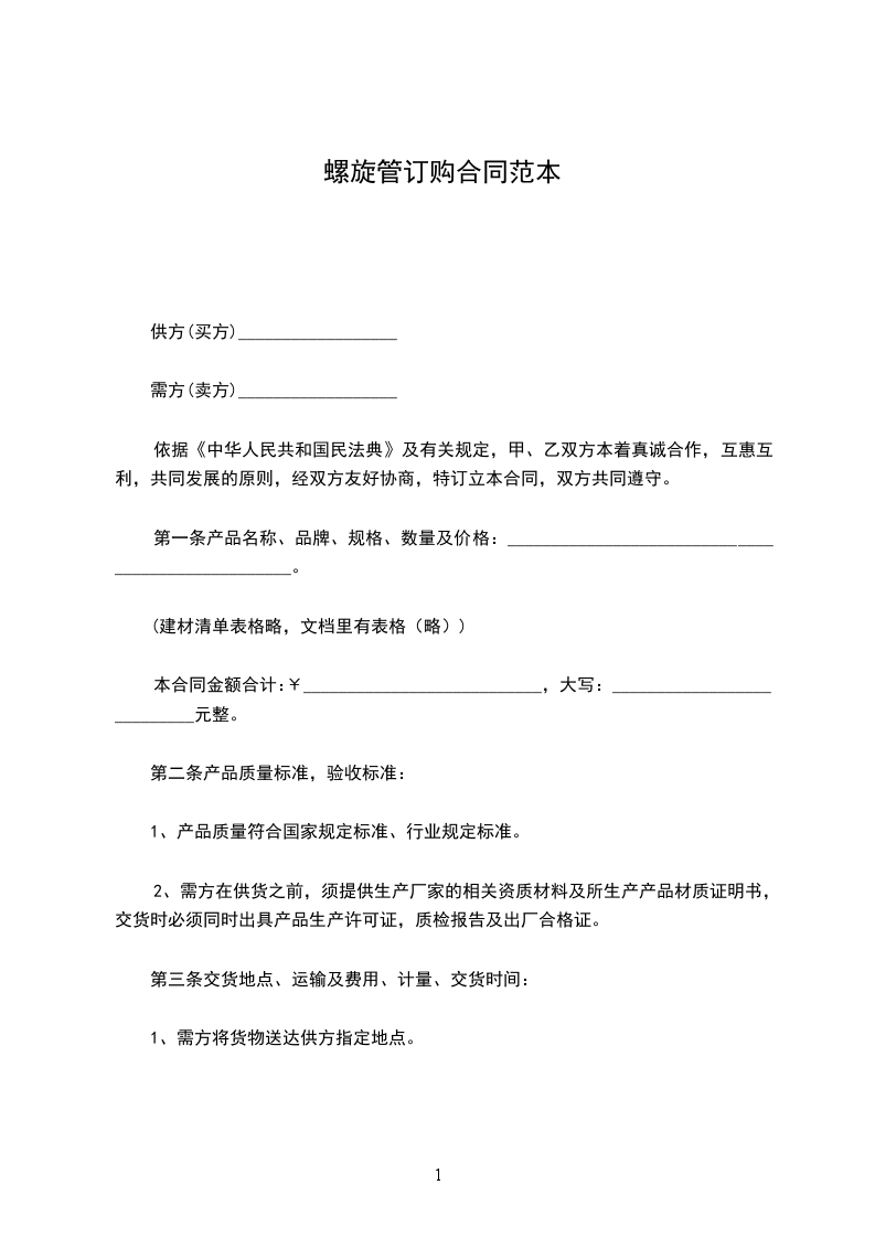 买方(乙方):__________________公司 签订地点及履行地:_______
